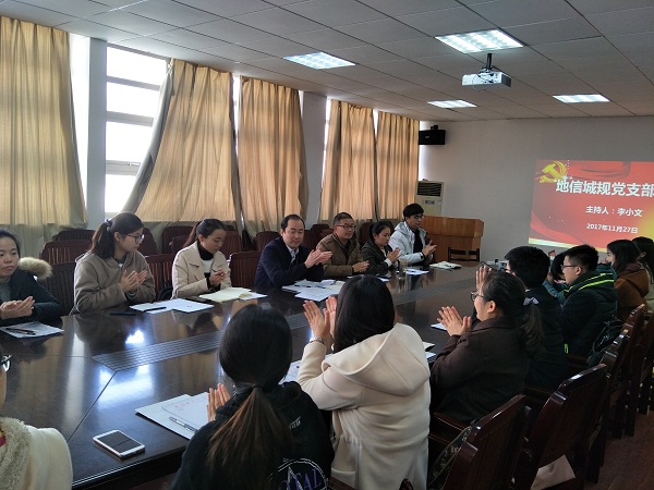 (地信城规本科生党支部 王敏)2017年11月27日,国旅学院地信城规本科生党支部在学院行政楼三楼召开发展党员支部大会,支部党员和拟发展对象全体参与,会议由党支部书记李小文主持,院党委副书记乔静列席。
