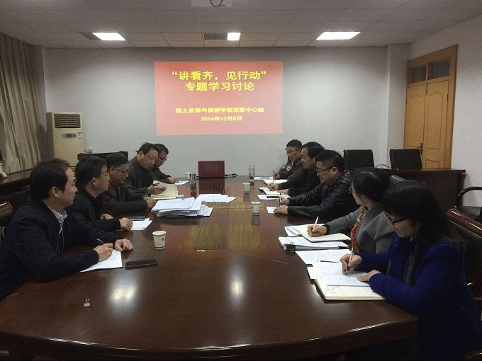 本网讯(国旅学院 陈健)12月5日,国旅学院在院行政楼四楼会议室召开“讲看齐、见行动”专题学习讨论会,院党委委员、领导班子成员、教授委员会成员参加了本次会议。