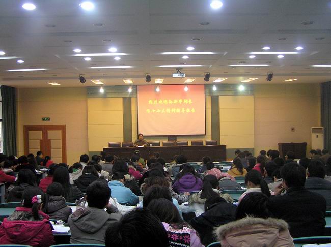 1211日下午,学校宣传部孙新华部长应邀来国旅学院,在该院实验楼101教室给全体老师和部分学生代表作了十七大精神辅导报告。