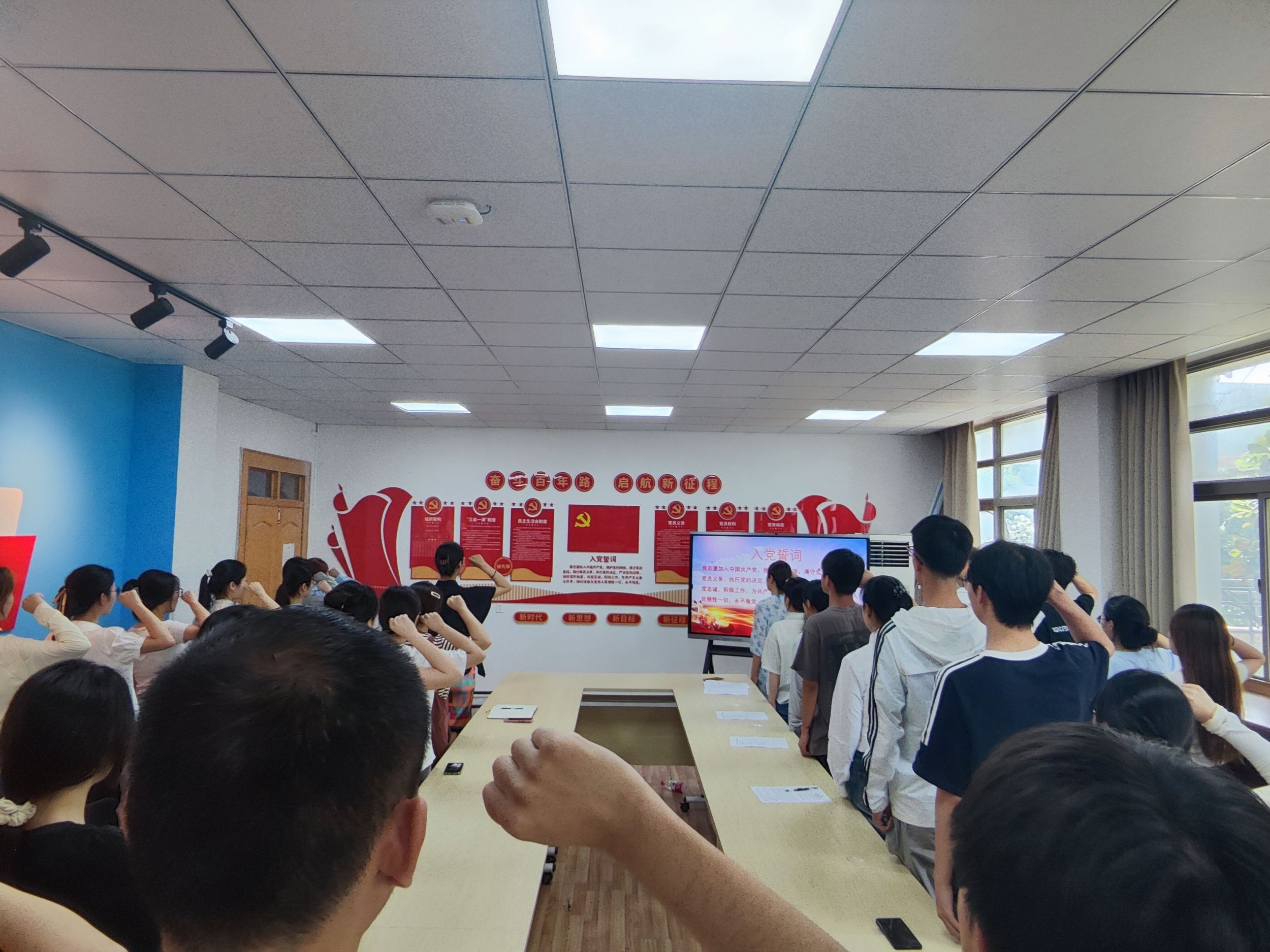 党委在学院党员活动室举行新党员入党宣誓仪式。院党委书记贾冠忠、各党支部书记、2024年上半年新发展的51名预备党员参加仪式,宣誓仪式由院党委秘书王美主持。