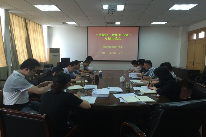 根据推进“两学一做”学习教育常态化制度化和开展“讲政治、重规矩、作表率”专题教育的实施方案方要求,6月19日上午,国旅学院党委中心组在院行政楼四楼会议室召开“讲政治、重规矩、作表率”专题教育第二专题讨论会。国旅学院党委委员、院领导班子同志及各党支部书记参加了学习交流,国旅学院党委书记贾冠忠主持会议。
