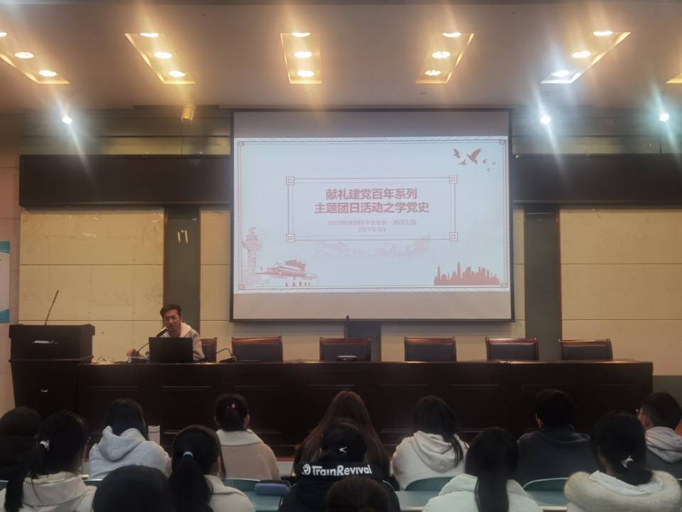 实验楼101开展“献礼建党百年系列主题团日活动之学党史”活动。本次团日活动由团支书孙文灿主持,2020级地理科学类专业一班全体同学参加。