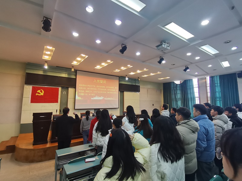 党委在院实验楼101报告厅举行2021年新党员入党宣誓仪式。院党委副书记乔静、各学生支部书记、2021下半年新发展入党的预备党员参加仪式,面对党旗庄严宣誓。宣誓仪式由党校班主任王美主持。