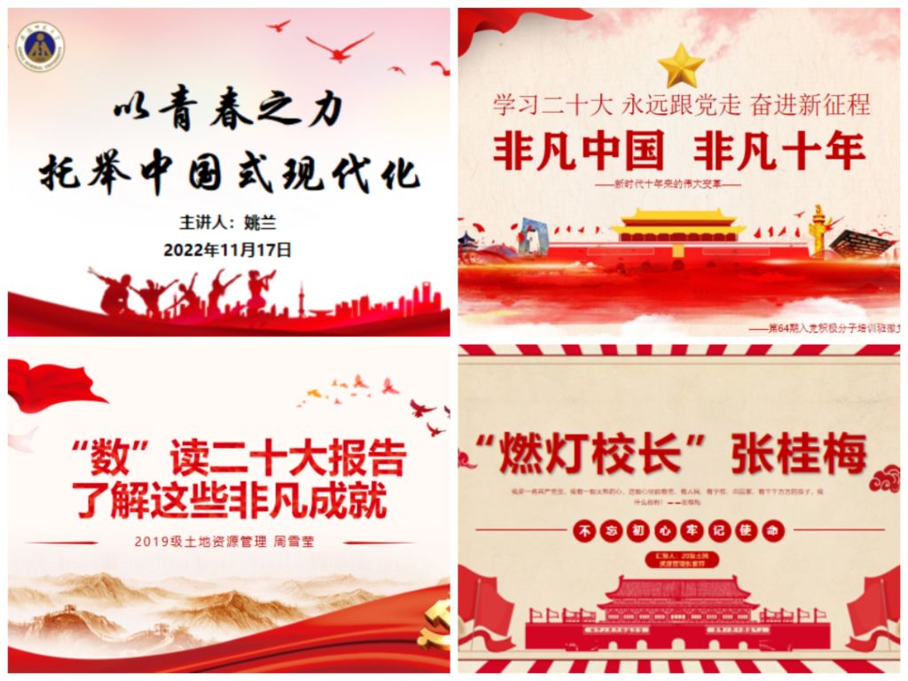学生党员先锋“五微五计划”活动实施方案》,举行“学习二十大 永远跟党走 奋进新征程”主题“微党课”宣讲和评比活动,引导预备党员、入党积极分子宣讲典型人物、事迹,明晰青年使命;组织学生党员、入党积极分子观看《二十大观察》《十年·答卷》《领航》等纪录片;举办“青春献礼二十大 强国有我新征程”之“青春之声”红歌演唱微视频录制活动;举办党的二十大精神学习体会“微分享”,鼓励学生用微博、微信、腾讯QQ等微媒体平台实时分享党的二十大学习感悟等活动。通过形式多样的宣传方式,让师生党员以身作则学报告、谈认识、谈心得、讲收获,确保学习宣传入脑入心,切实将党的二十大精神学习成果转化为实际行动。