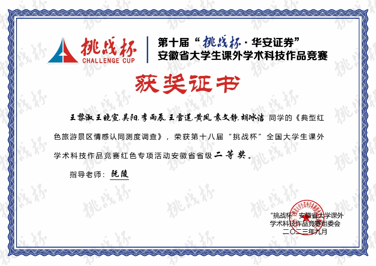 第十届“挑战杯”安徽省大学生课外学术科技作品竞赛红色专项省级一等奖4项,二等奖5项,三等奖2项