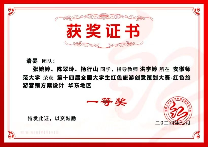 第十四届全国大学生红色旅游创意策划大赛华东地区一等奖