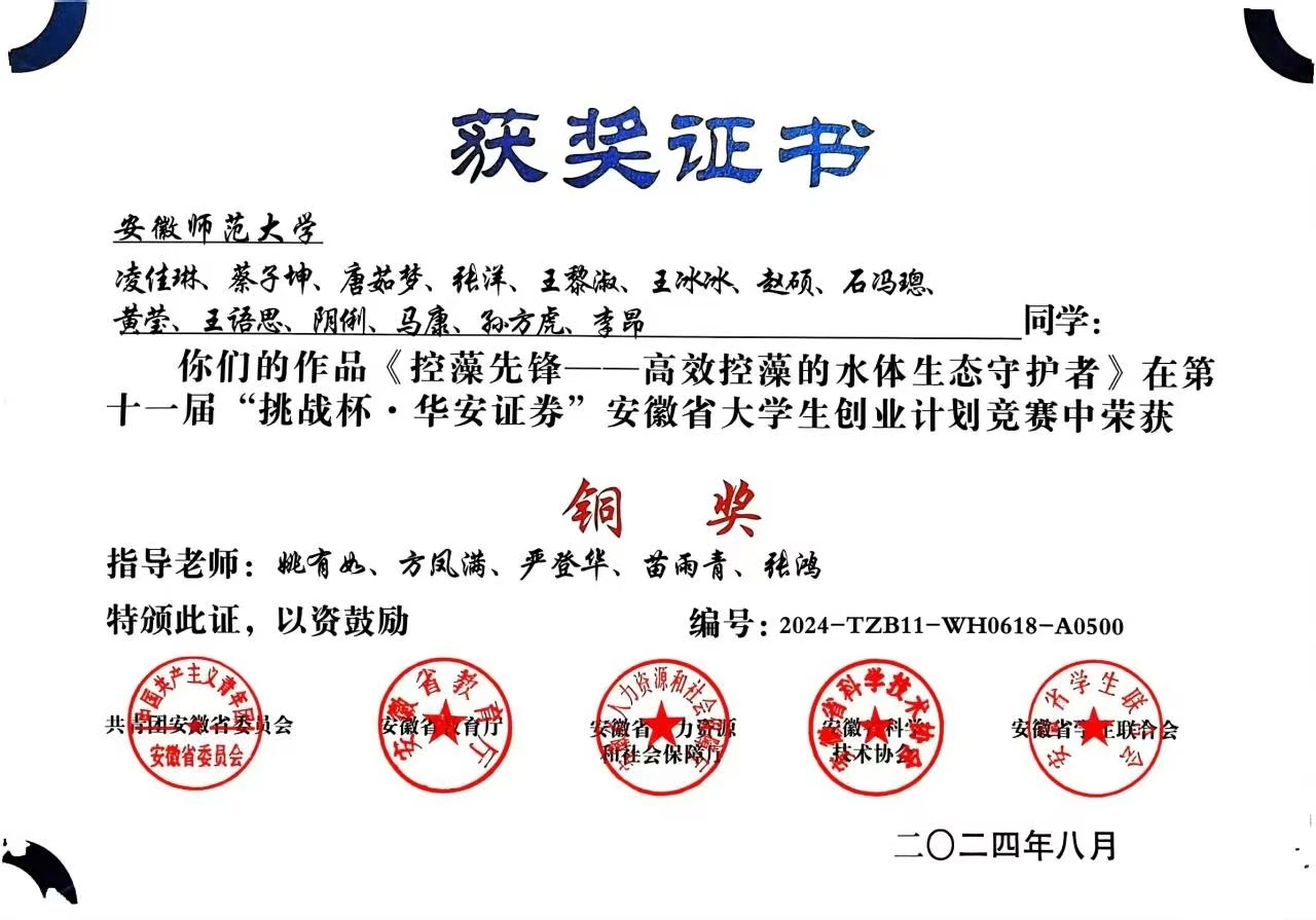 第十一届“挑战杯.华安证券”安徽师大学生创业计划竞赛省级铜奖