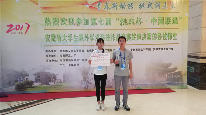 学子在第七届“挑战杯”大学生学术科技作品竞赛中荣获全国三等奖、安徽省一等奖