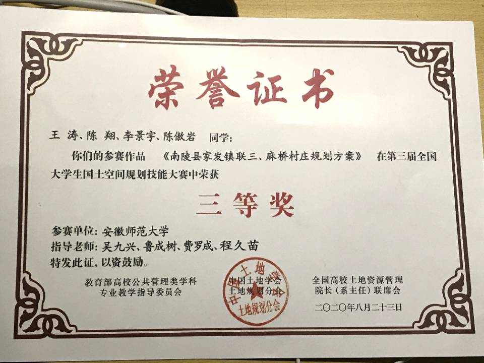 第三届全国大学生国土空间规划技能大赛三等奖