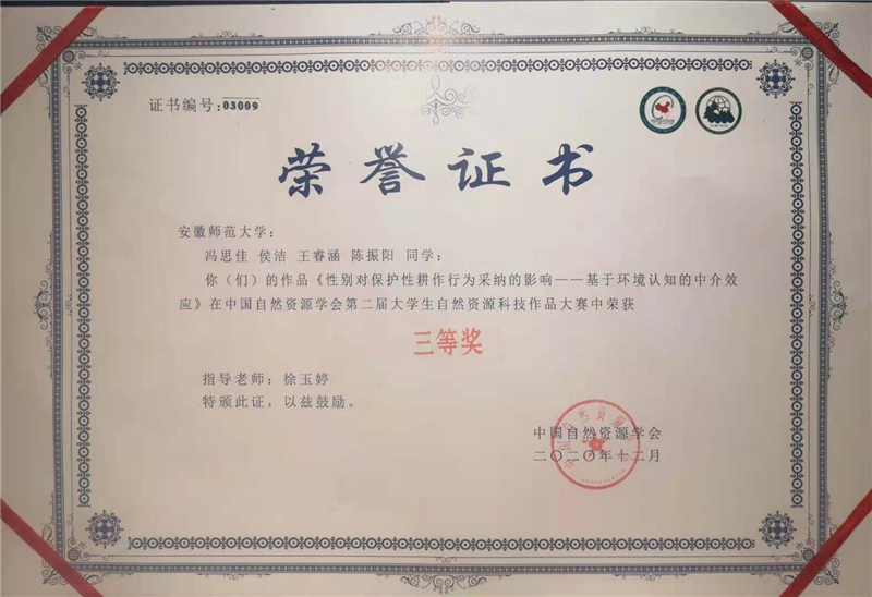 第二届全国大学生自然资源科技作品大赛三等奖
