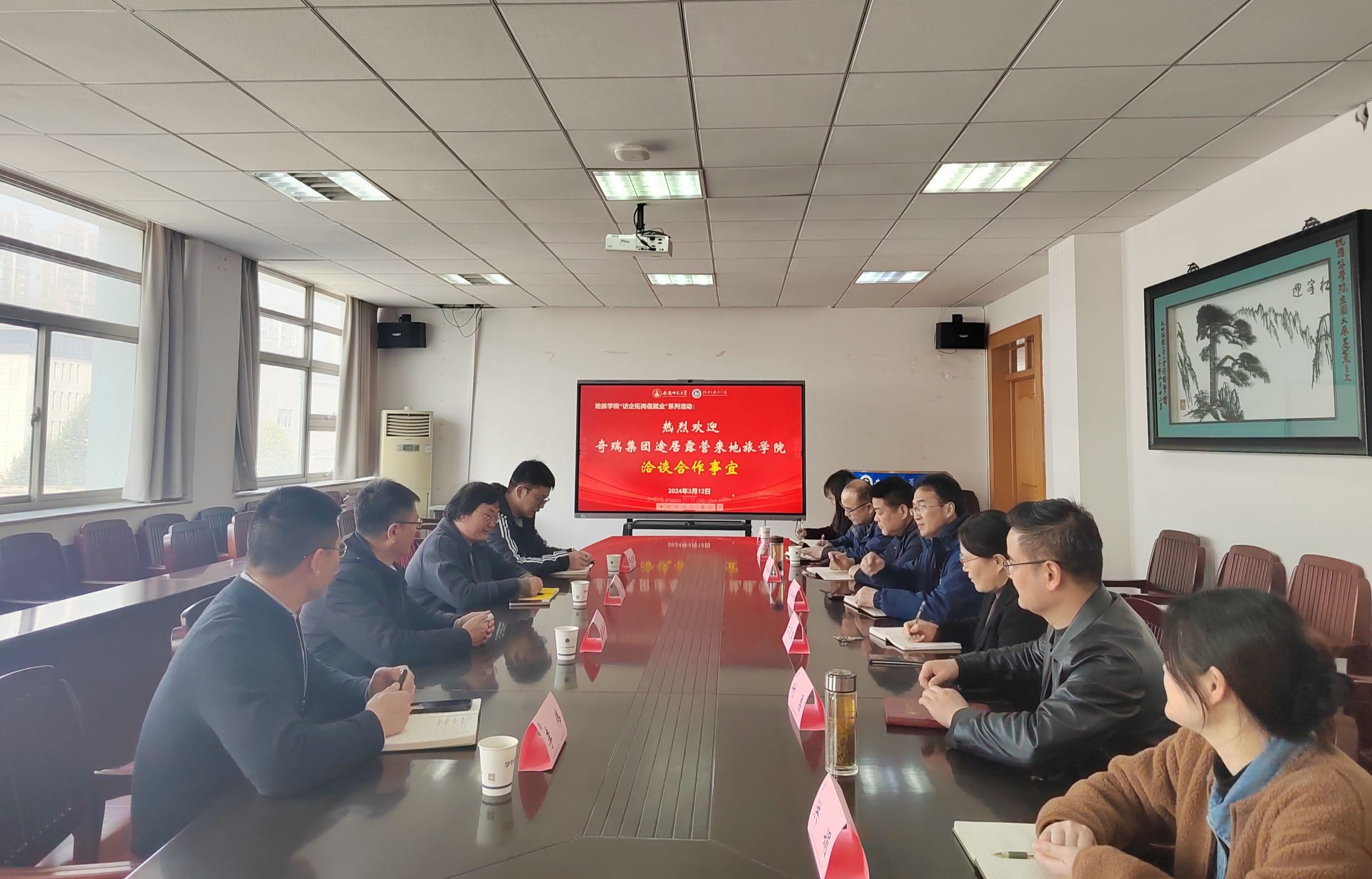 与途居露营投资管理股份有限公司在学院三楼会议室举行校企合作交流会。奇瑞控股集团招聘中心主任李伟,途居露营投资管理股份有限公司总经理钱奕安,人事总监司琪,综合部部长乔启明,国产精品
