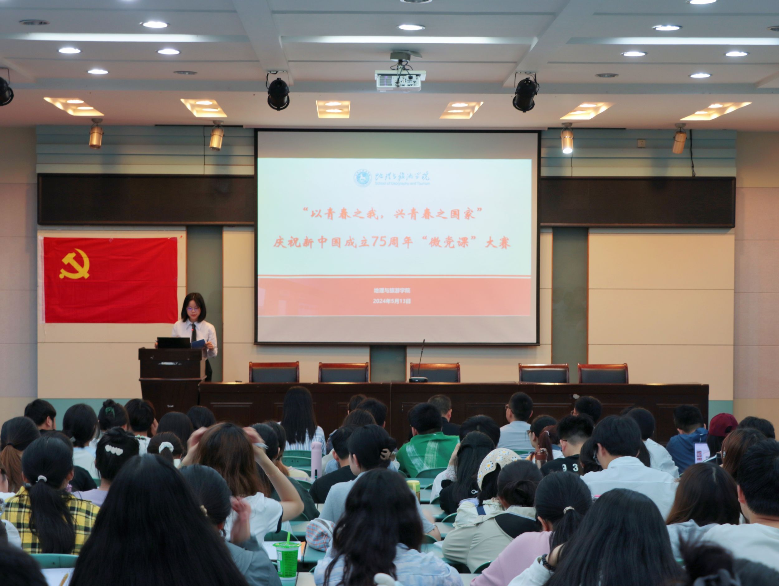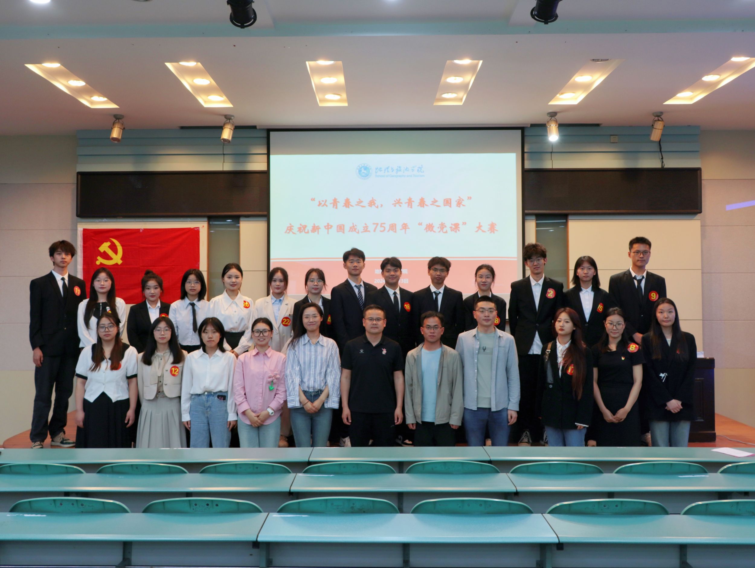 在学院实验楼101报告厅开展了“以青春之我,兴青春之国家”庆祝新中国成立75周年“微党课”大赛。院党委副书记付勇、院团委书记韦银艳及各党支部书记担任评委,党员培训班成员、入党积极分子到场观摩学习。