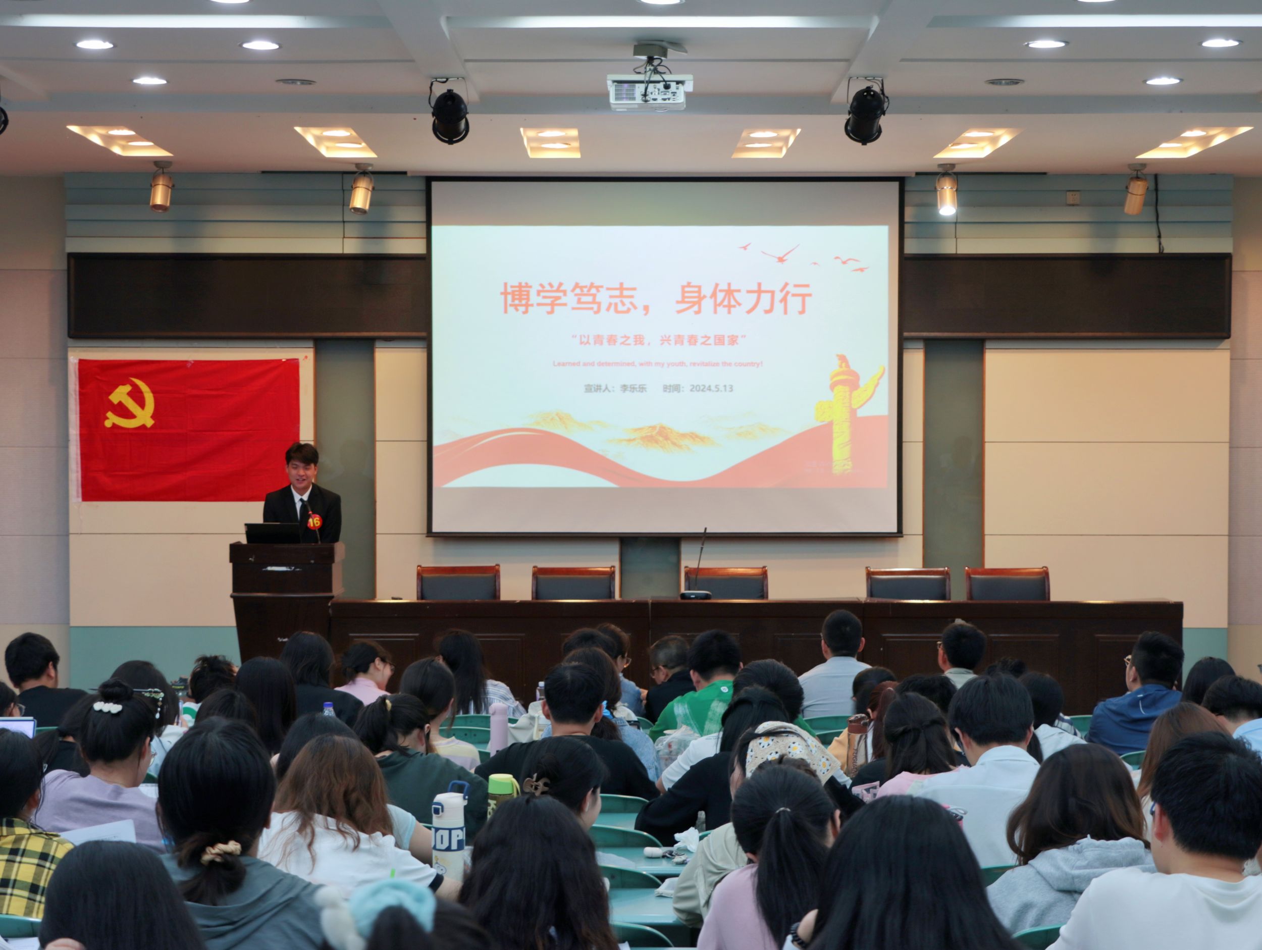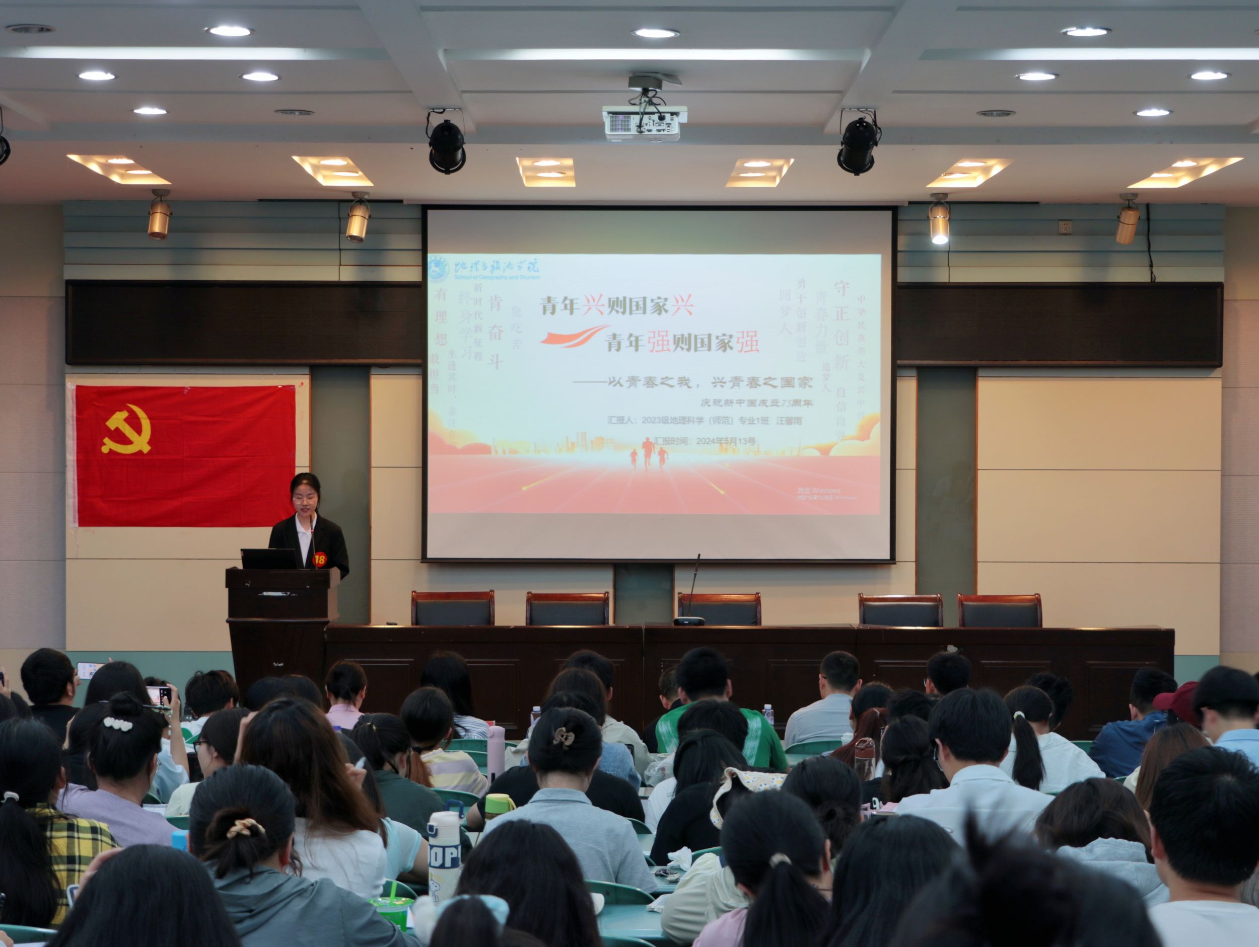 2023级旅游管理专业武庆同学以伟人寄语为引,深入剖析了“青春筑盛世中国”的宏伟命题。回首历史的波澜壮阔,又展望未来的无限可能,从知识的积累、创新的勇气、责任的担当和文化的传承四个方面,为当代青年绘制了一幅幅生动的成长蓝图;2022级地理信息科学专业郑欣悦则以中国航天事业的辉煌成就为线索,通过讲述航天员们的感人事迹和至理名言,生动诠释了载人航天精神中“特别能吃苦、特别能战斗、特别能攻关、特别能奉献”的深刻内涵,密切贴合着“心向蓝天青春正当行”的主题;2023级城乡规划专业夏权傲以“习榜样之力,兴青春之中国”为主题,通过对红色人物的分享,讲述这些革命烈士的英勇事迹,这些不同时代的青年昭示着榜样的力量,这力量如炬火,标示着当代青年前进的方向;2022级地理科学(师范)专业胡子怡将百年前的“五四”与今天的“五四”进行鲜明的对比,揭示了“时代各有主题,青春一脉相承”的伟大传承,她带领同学们穿梭于历史之中,感叹着百年巨变,领悟着青春力量,紧扣“青春向党,挺膺担当”的时代课题;2022级旅游管理专业孙艺丹以“生逢盛世,重任在肩,未来恰是新青年”为主题,讲述了从《新青年》的诞生到如今五四运动105周年的巨变以及一个个奋斗者在国家建设中发挥的重要力量,明确了“何为青春”、“青春何为”,揭示了“骨气,生气,血气,底气”对于广大青年的重要意义……