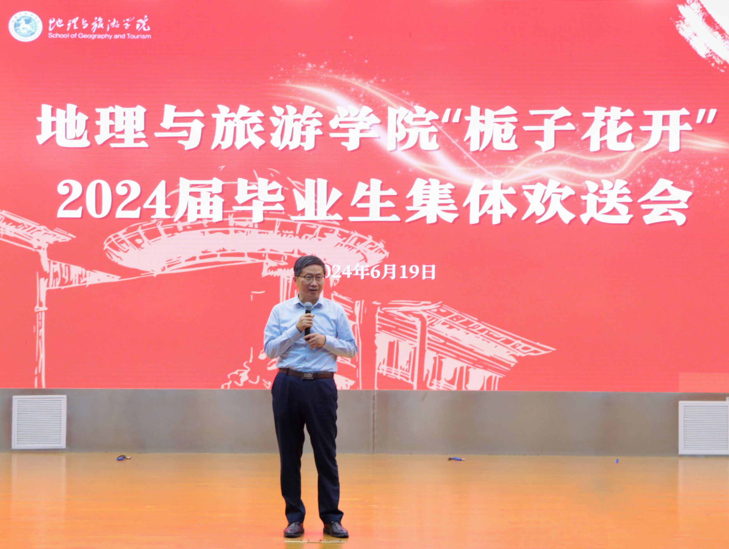 毕业研究生代表、2021级人文地理学专业朱可馨、本科生代表、2020级旅游管理专业舒玉茹在不舍中回望校园,感恩母院,信心满满地展望前程。毕业班辅导员代表彭媛媛与旅游管理专业教授杨钊,分别上台为毕业生寄语,老师们的殷殷嘱托与深情期望为毕业生奔赴远方再次指明方向。方凤满在致辞中希望毕业生们能够在未来的道路上以进取与担当、自适与真诚、自爱与感恩的青年形象书写生命的精彩。