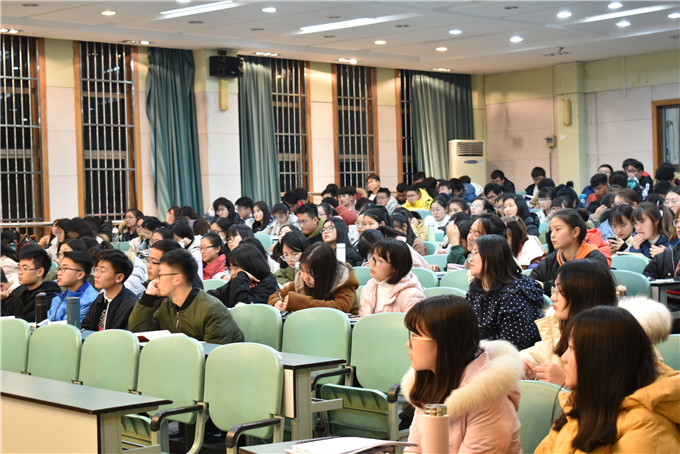 12月23日晚,实验楼101报告厅几乎座无虚席,乔静率先为2018级酒店管理、旅游管理、旅游管理(中外合作)、土地资源管理专业全体学生开讲班会,学院2018级辅导员老师陈祥云列席聆听。
