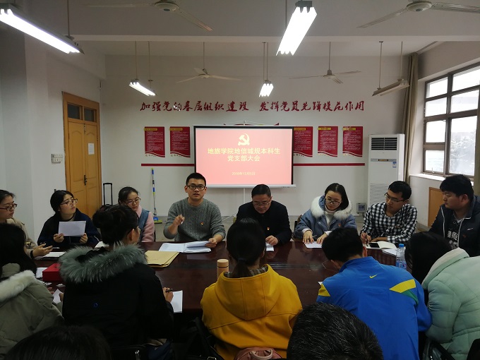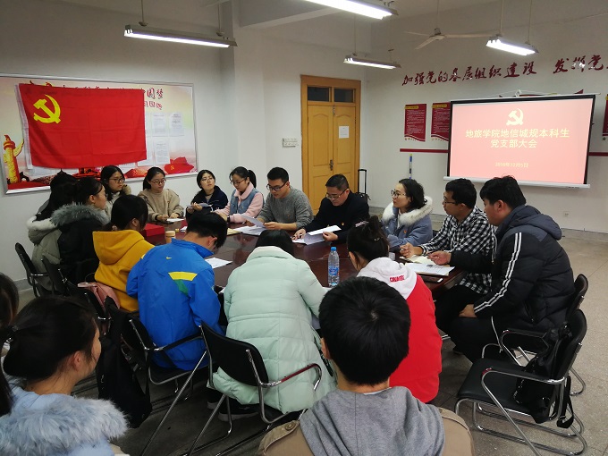 地信城规本科生党支部在学院学生党员活动室召开支部党员大会,讨论和表决接收预备党员和党员转正事宜。院党委委员、院长苏勤出席大会并指导、检查支部工作,党支部全体党员、发展对象以及部分入党积极分子出席大会。大会由支部书记陈健主持。