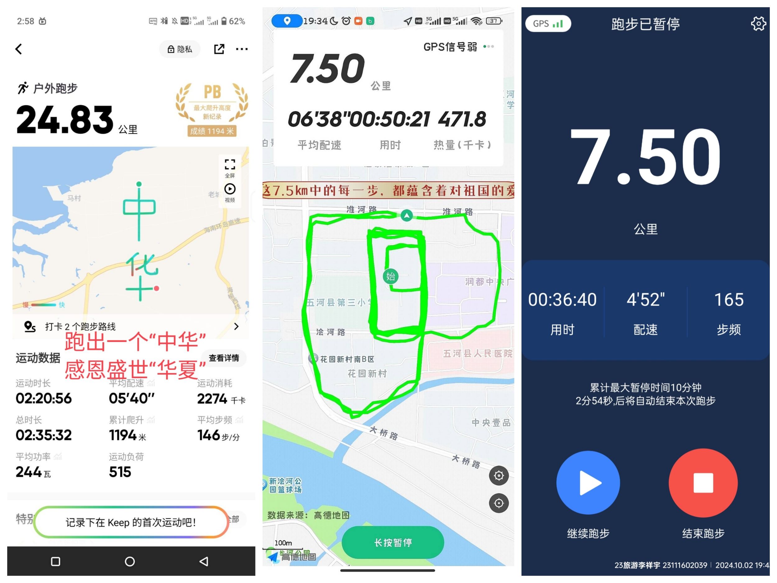 “我脚下的祖国”国庆创意跑活动则鼓励参与者发挥创意,展现朝气,通过跑步轨迹或者具体数据送上对祖国的祝福。在4个年级提交的众多提交作品中,不乏耗时4小时骑行101公里的坚强意志,也有耗时4小时跑出中国地图的蓬勃朝气以及耗时2小时跑出“中华”字样的深切祝福。