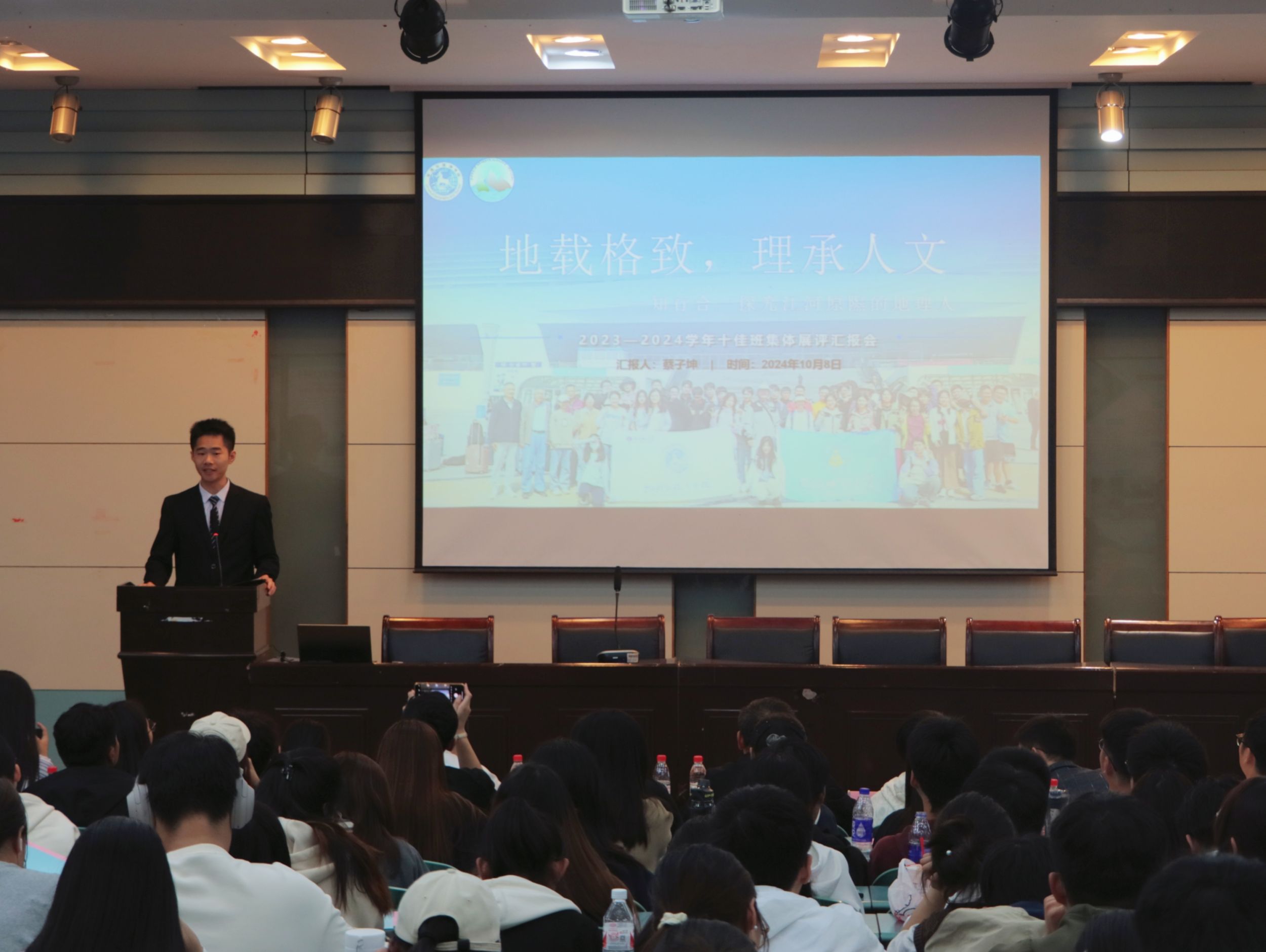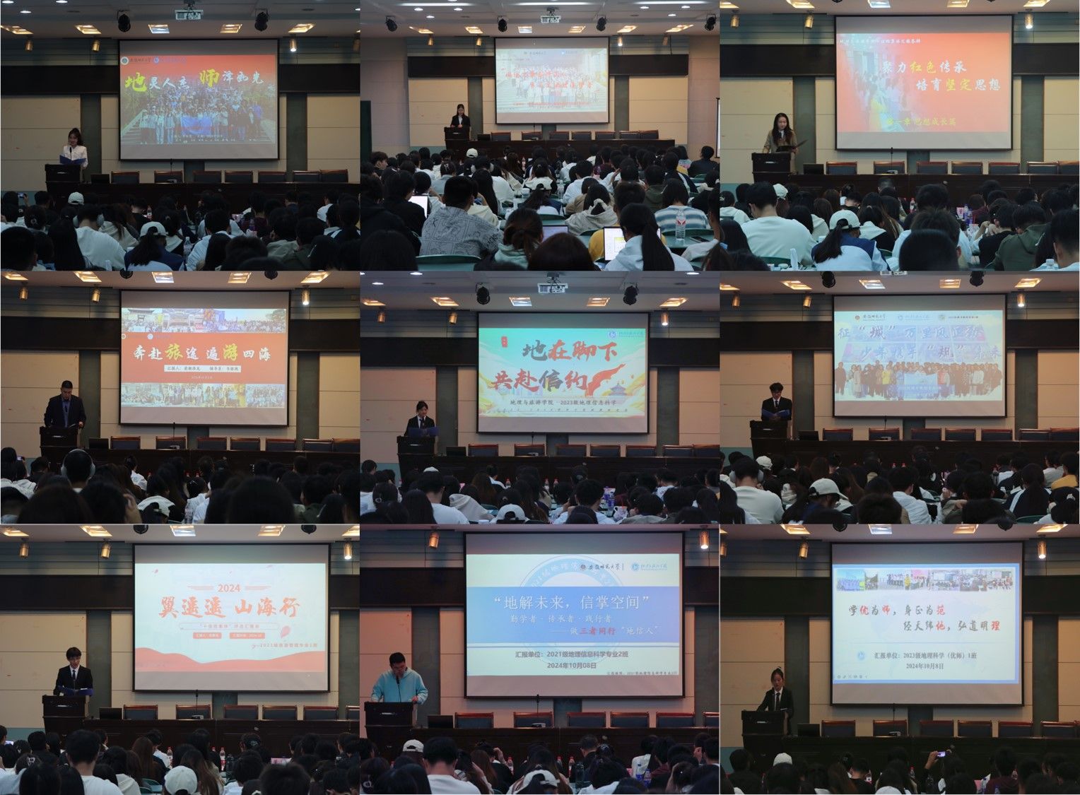 其中,2021级地理信息科学1班以“凝魂·强基·笃行”为目标,立志做新时代的地信人;2021级土地资源管理1班从红色传承、师生帮扶、班级团结、专业学习四个角度展示班级的独特风采和昂扬风貌;2023级地理信息科学专业1班以大学生护航行动计划为核心,扎实推进护思想、护学习、护生活、护情感、护身心。经过激烈角逐,综合现场汇报、日常考核、师生代表互评等,2021级地理科学(拔尖人才班)专业1班等8个班级入选2023-2024学年先进班集体,2022级地理科学(师范)专业1班等5个班级入选2023-2024学年先进班集体提名奖。