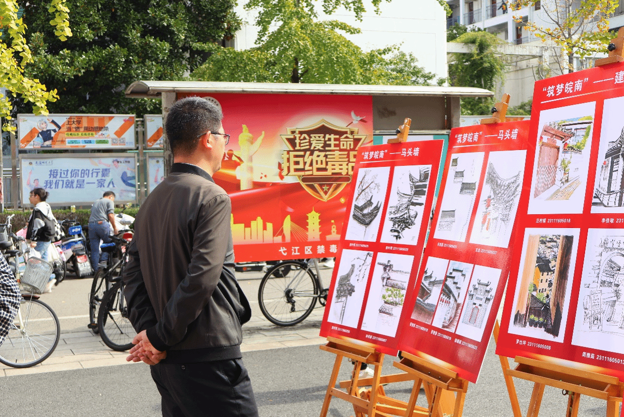 城乡规划专业在花津校区二食堂门口举办了“徽韵丹青、乡绘皖南”皖南写生作品展。校教务处处长崔光磊、国产精品