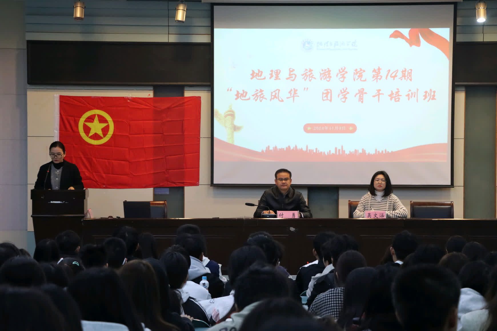 举办了 2024 年“地旅风华”团学骨干培训班。党委副书记付勇、院团委书记韦银艳、院团委副书记吴文涵出席此次开班仪式,院团委、学生会骨干、各班级主要学生骨干代表参与培训学习。