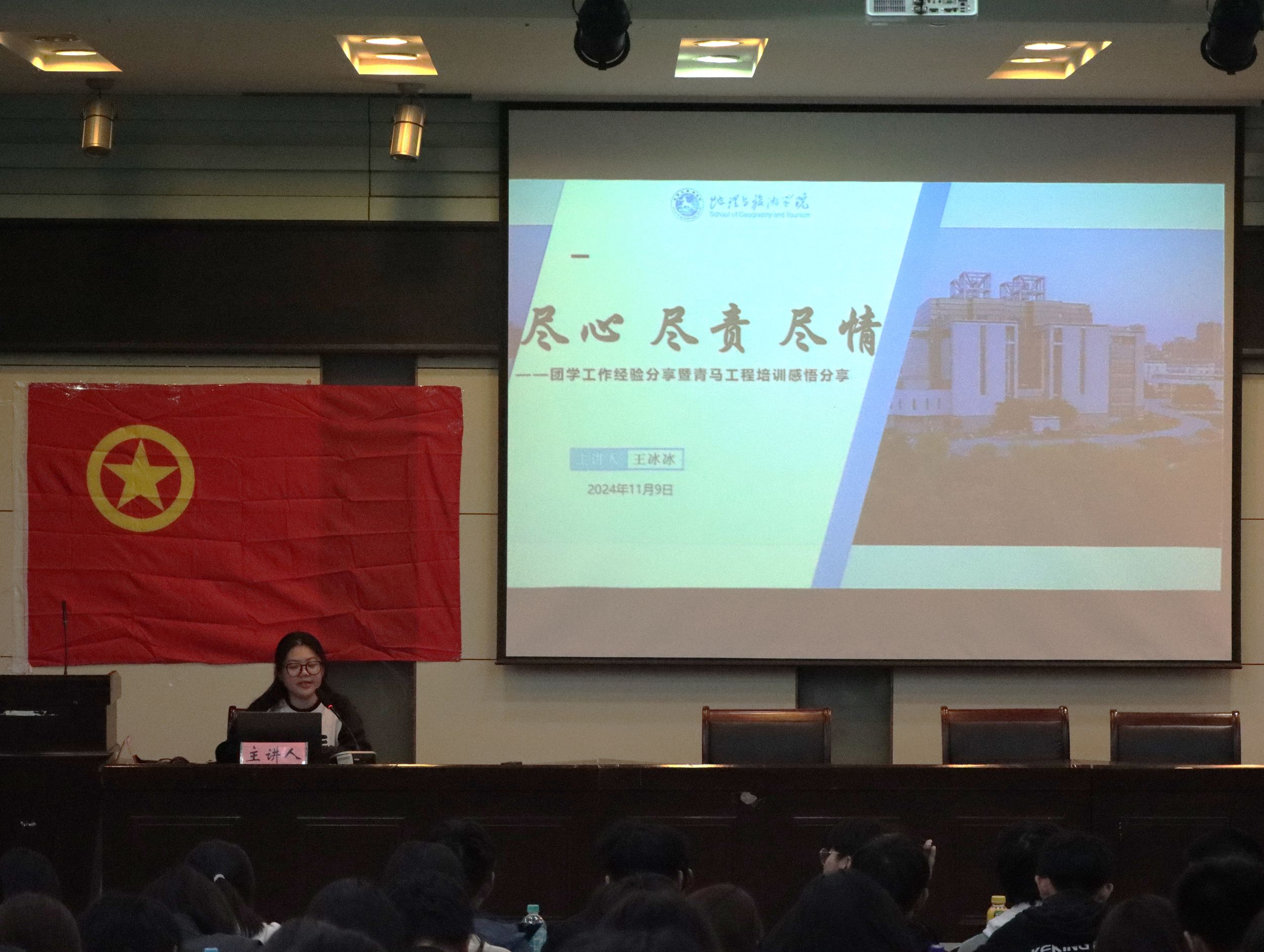 学院还要邀请了2021级土地资源管理专业的优秀学生赖姝媛做了题为《在笃志尚学中坚守学生本分,于服务奉献中体悟使命担当》的报告,她从正视问题、改变态度、破解之策三个方面向团学骨干们讲述了如何平衡工作与学习。此外,学生会团委副书记王冰冰以《尽心、尽责、尽情》为题,分享了自己的团学工作经验和青马工程培训感悟,让团学骨干们感到受益匪浅。