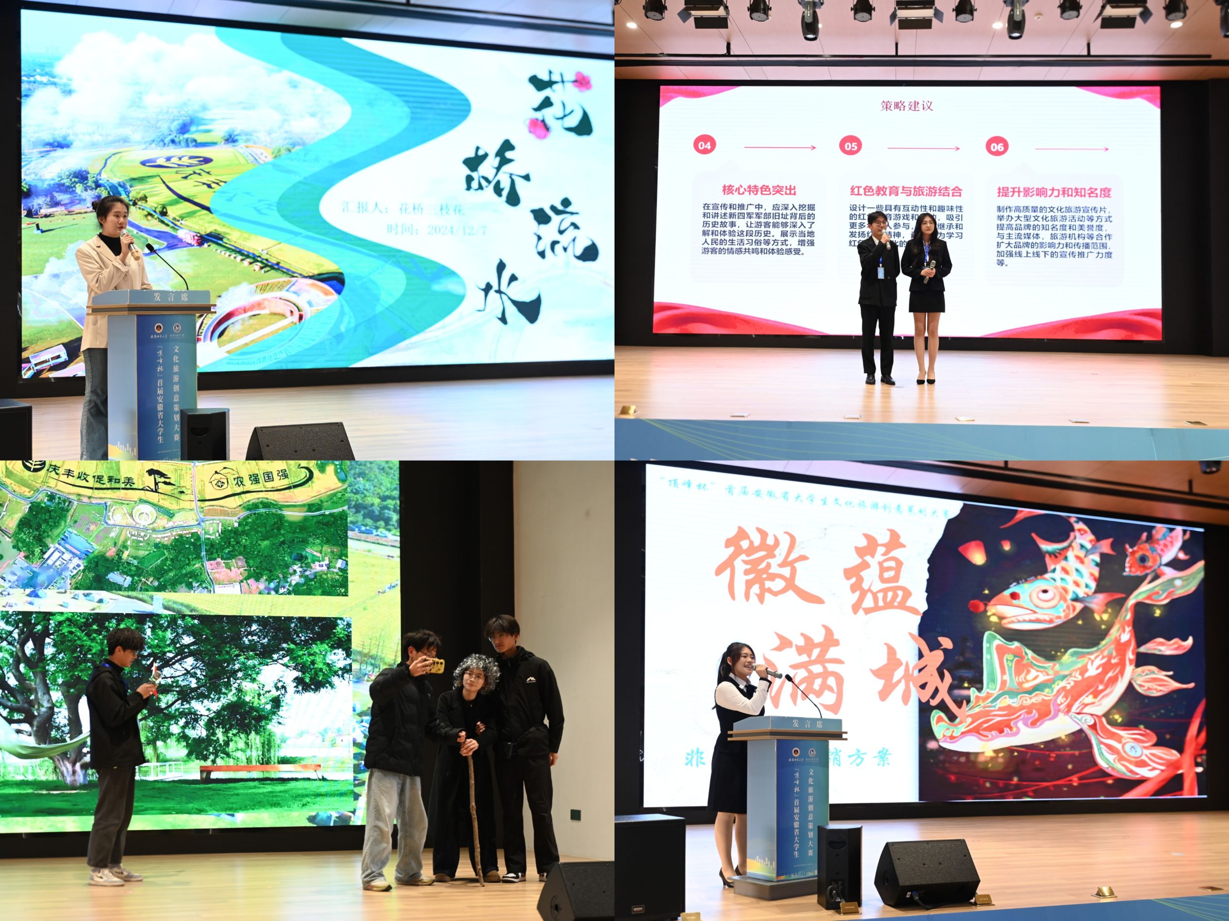 承办,安徽顶峰文化旅游发展有限公司协办,湾沚区人民政府、芜湖市文化和旅游局支持的“顶峰杯”首届安徽省大学生文化旅游创意策划大赛决赛在芜湖市鸠兹湾艺创共富乡村圆满落幕。国产精品