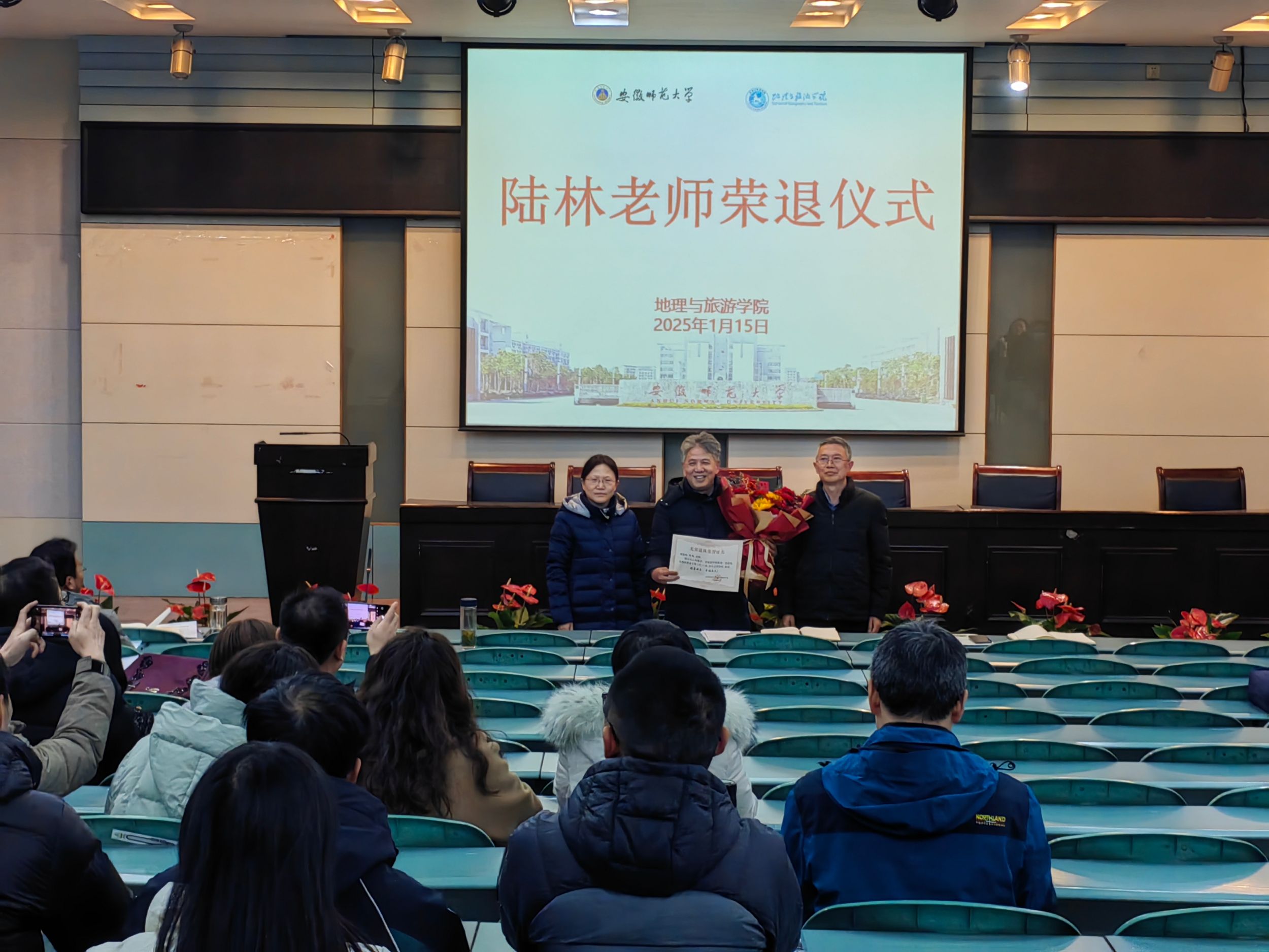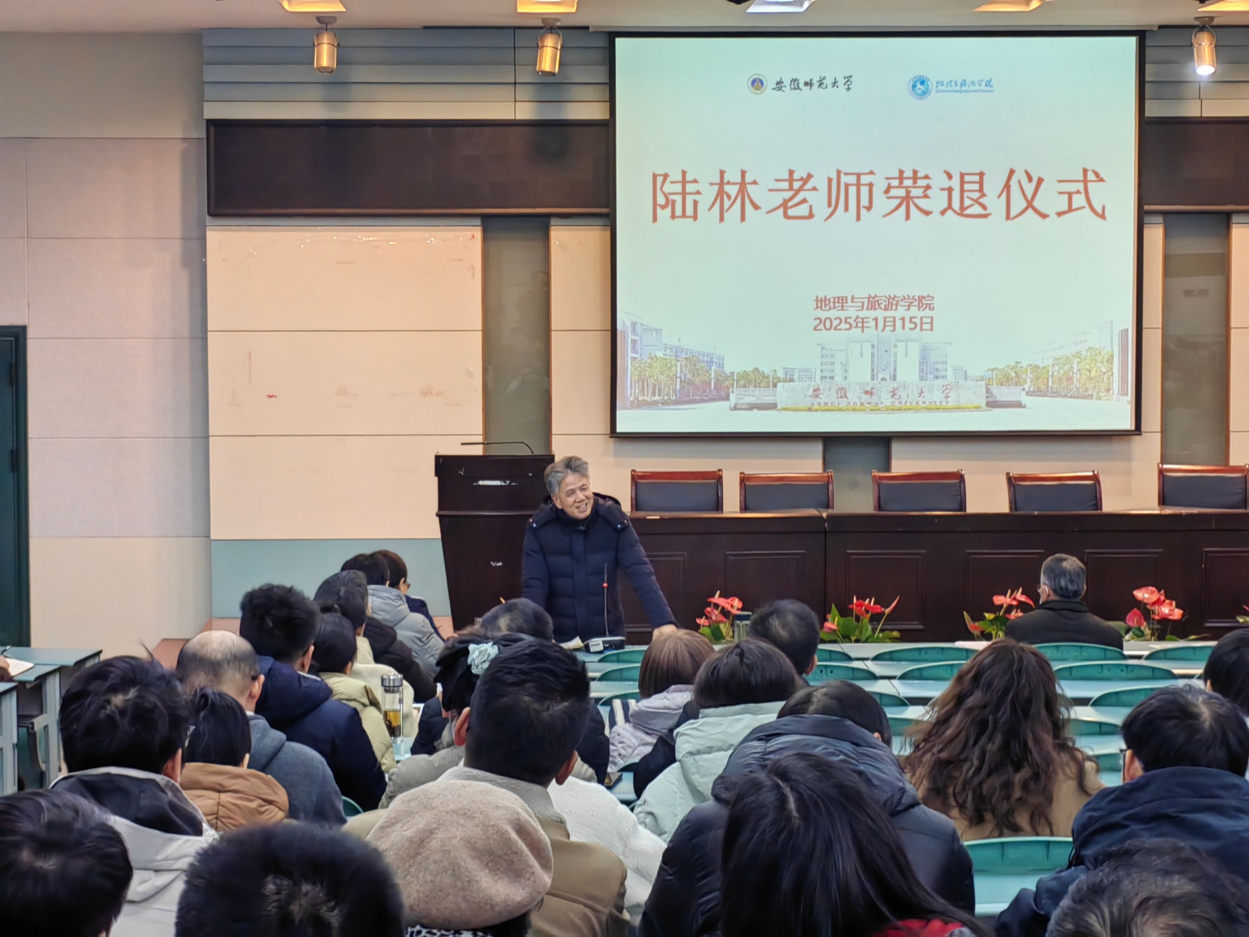 会上,院长方凤满回顾了陆林老师求学、工作经历,对其多年来为学校和学院事业发展做出的积极贡献给予了充分肯定,并代表学院对其多年辛勤工作和敬业精神表示衷心的感谢和致以崇高敬意。希望陆老师离岗不离心,继续为学院发展发挥余热。陆林发表退休感言,他深情回顾了自己数十载从教的点点滴滴,由衷地感谢领导同事们多年来的支持和肯定,衷心祝愿学院未来发展得越来越好。