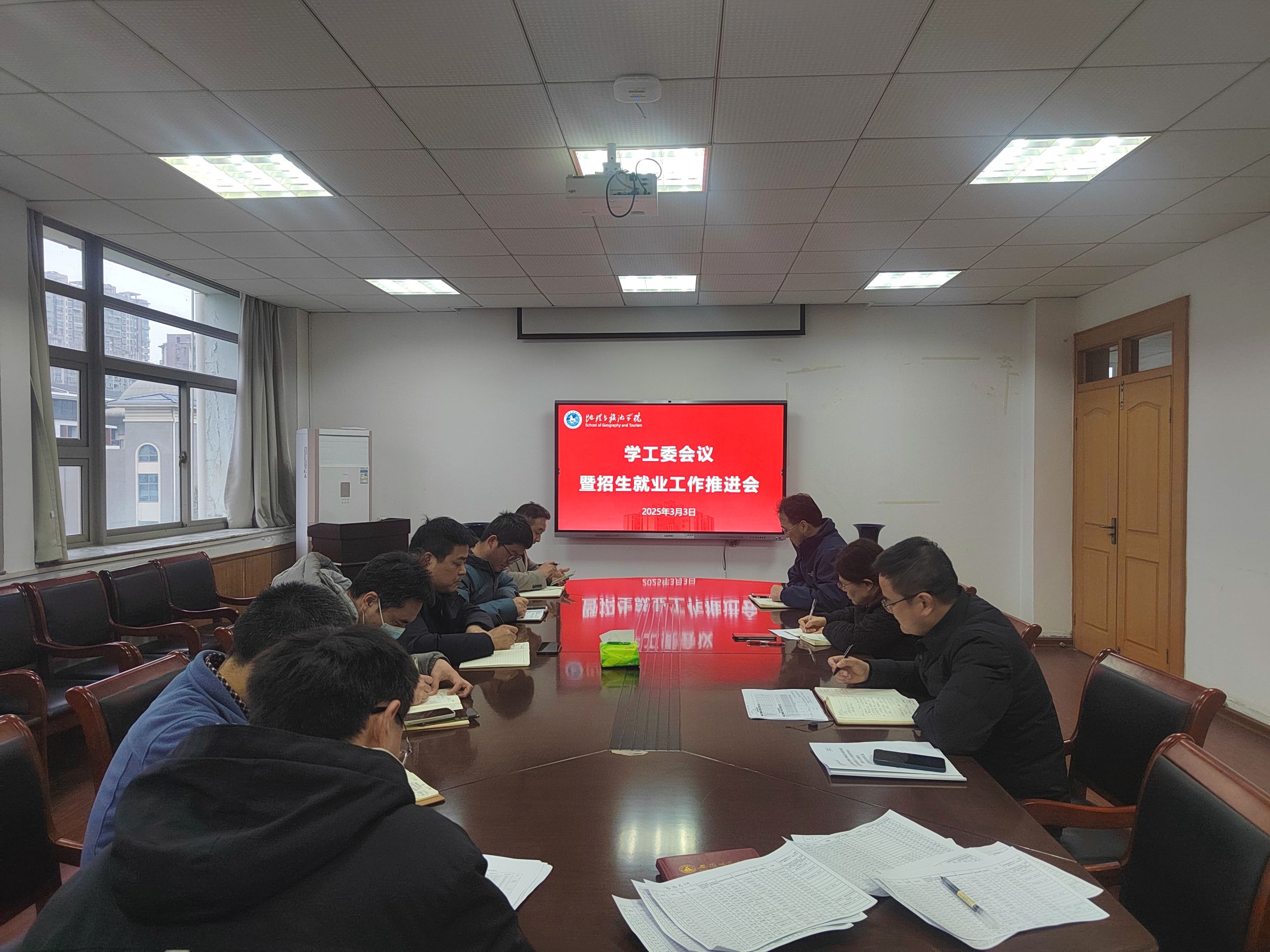 于3月4日在学院四楼会议室召开学工委会议暨招生就业工作推进会。学院院长方凤满、院党委副书记付勇、教学副院长杨兴柱、各专业负责人及毕业班辅导员参加会议,会议由付勇主持。