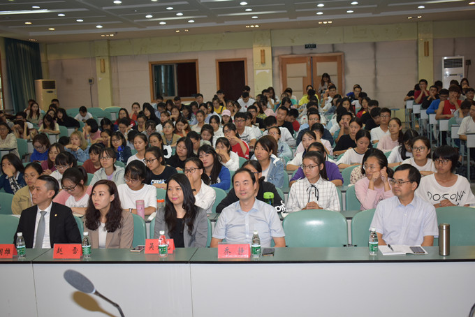 实验楼101报告厅做主题为“酒店经理人的成长与机遇”的专业报告。本次报告由酒店管理专业负责人尹寿兵主持。学院党委副书记乔静、部分专业课教师,2018级酒店管理及旅游管理专业新生列席聆听。