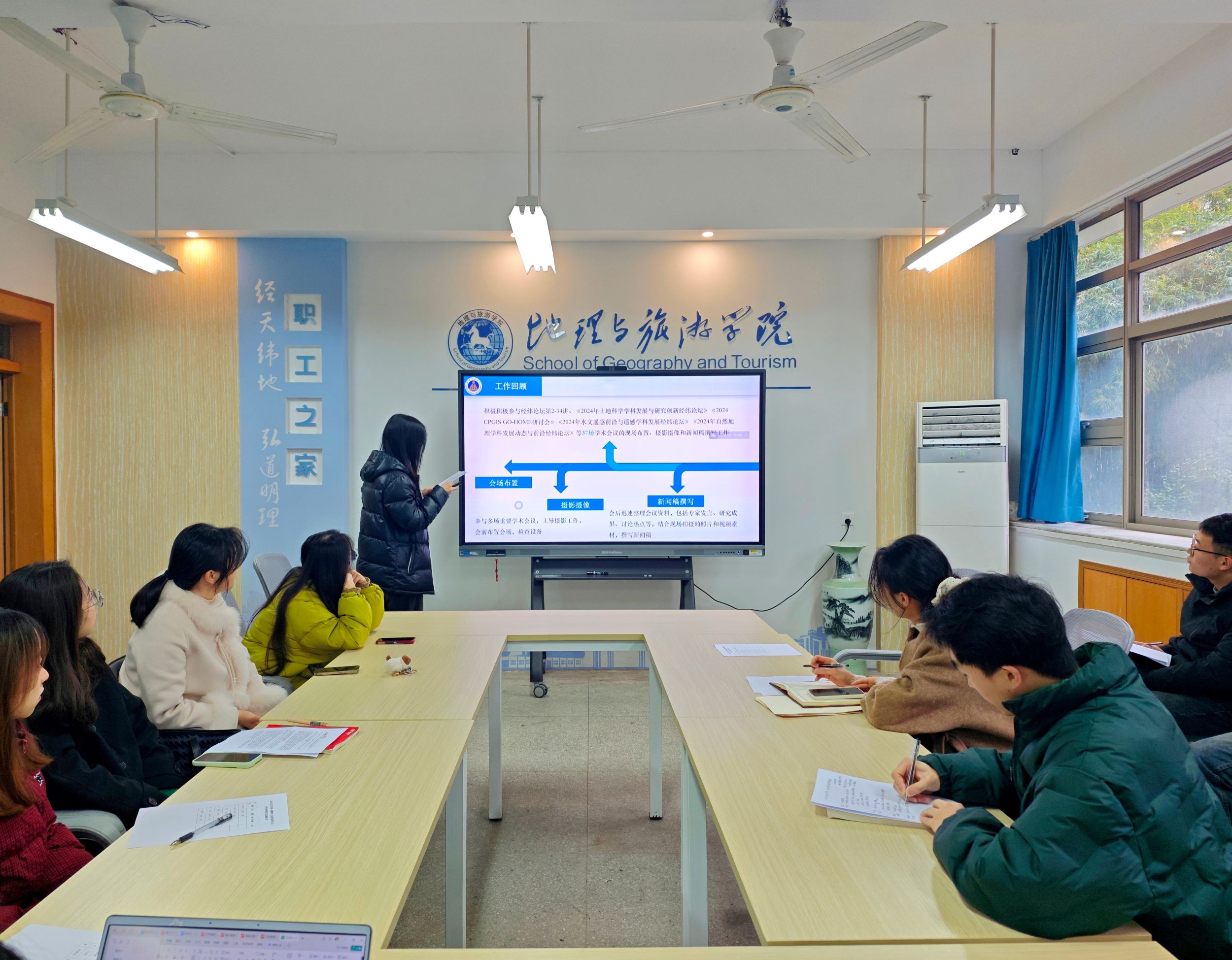 研究生会2024-2025学年春季学期研究生述职报告会在行政楼一楼职工小家顺利举行。研会指导老师从然、校研究生会代表孙海晨及各部门部长、部员出席此次会议,会议由院研会主席张招弟主持。