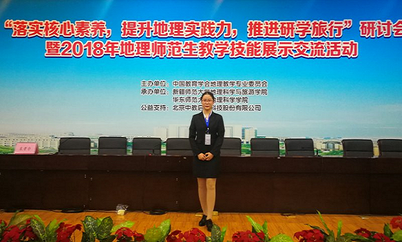 2015级地理科学(师范)专业解修月和2017级地理学科教学专业代梦云在刘学梅老师带队指导下参赛,双双喜获 “大会示范课”(最高奖项),指导教师刘学梅和李俊峰获得优秀指导教师奖。