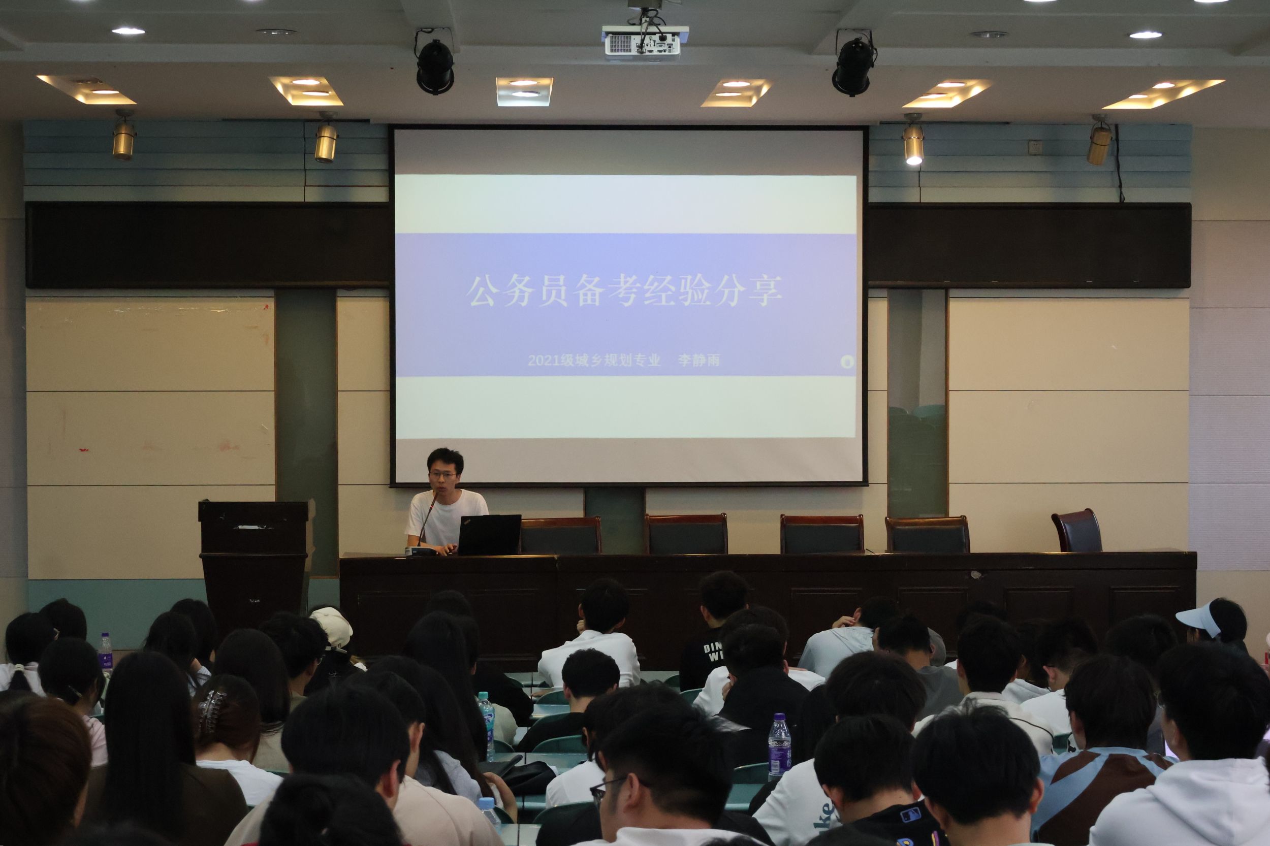 此次讲堂围绕考公、考研及就业三大方向,特邀各领域杰出校友,为在场学子带来宝贵的经验分享。来自2021级城乡规划专业的李静雨和2020级土地资源管理专业的林丹倩分别向在座的同学们分享了最近也是最新的考公、考研经验,从如何做出合适的选择到如何备考,用亲身经历系统地带领同学们初步了解相关方面信息,忠告同学们要慎重做出决定,决定下来就要坚持去做好这件事。就业方面,来自2005级土地资源管理专业的王齐芳校友以专业视角带领同学们初步了解行业概况、主要业务类型及能力需求等。通过与优秀校友的面对面深入交流,同学们积极提问,前辈耐心解答,这一过程不仅解决了同学们的疑惑,也让他们对自己的未来方向有了更加清晰的认识。