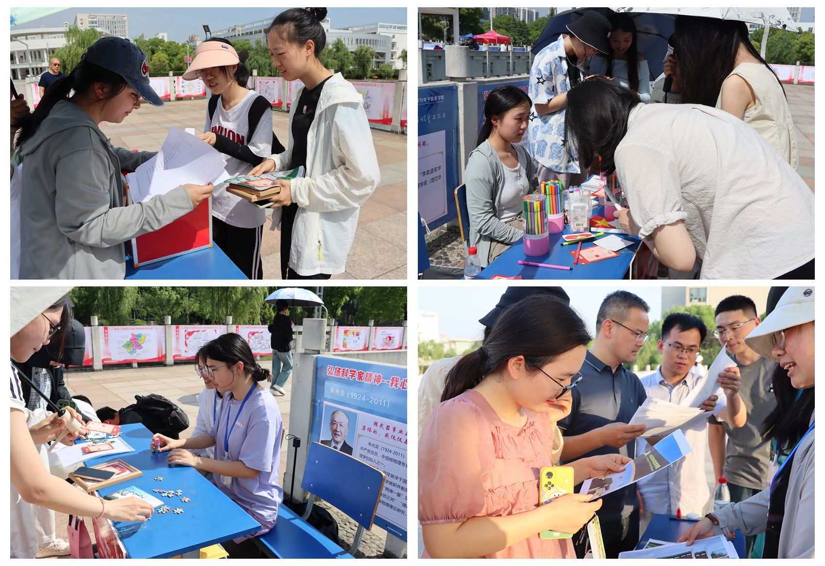 九曲桥汇展现场同步开展“党史与地理知识竞答”互动环节,题目涵盖红色旅游资源和国情地理等内容。参与者通过趣味答题、绘画、拼图进一步巩固理论知识,现场气氛热烈,展现了师生们扎实的学识素养和昂扬的精神风貌。活动同时为获奖同学设置了奖品进行鼓励。