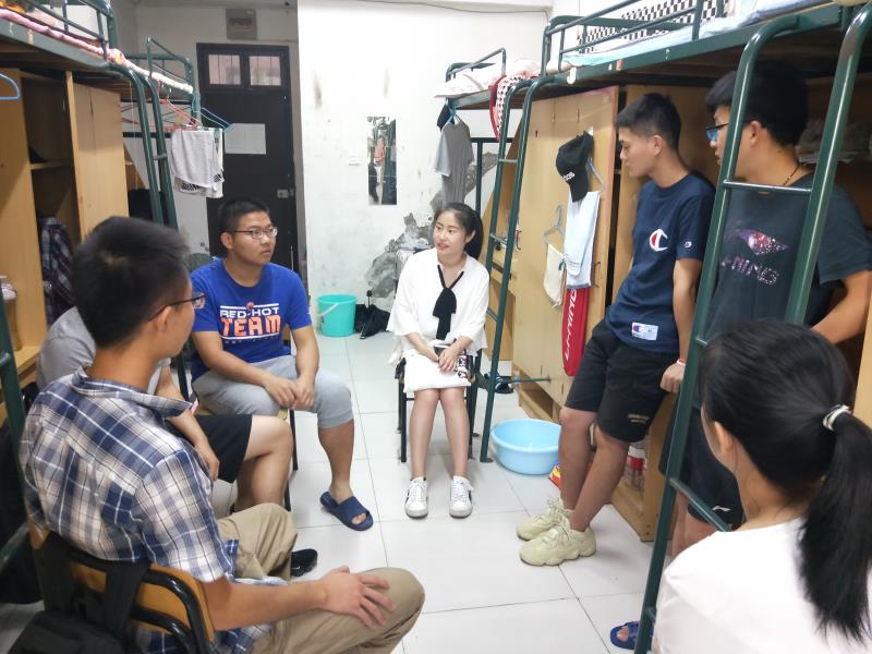 吴文涵和韦云娇走进实习生寝室,关心学生基本生活状况。吴文涵还着重强调实习过程中的安全问题,叮嘱实习生把安全放在首位,在积极参与实习工作的同时要注意自身的人身安全和财产安全。