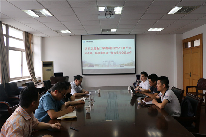吴传锋介绍了臻善科技股份有限公司的成长历史、业务经营情况及校企联合培养高层次人才的合作方向。他表示,希望逐步加强与学院在学生实习就业、培养发展、科研成果交流与转化等方面的合作,达到“合作创新、合作育人、合作发展”的目的,促进校企共同发展。
