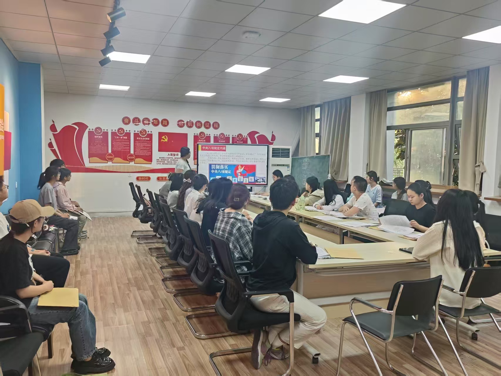 临近毕业,学院毕业生党支部召开“青春向党·逐梦远航”专题组织生活会。全体党员重温入党誓词,围绕“如何在新征程中发挥先锋模范作用”展开讨论。学院党委书记张顺寄语毕业生党员,要始终牢记党员身份,在新的岗位上继续发光发热,为社会贡献力量。