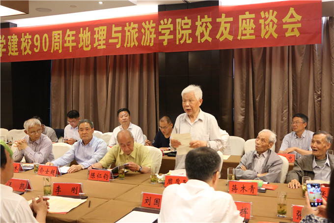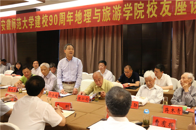 学院院长苏勤首先感谢老教师与老领导对学校和学院发展的辛勤付出,感谢院友们为学院发展争光添彩,介绍了学院发展取得的成绩,并一一简要介绍了莅临座谈会的老师和院友。参加本次座谈会的师生共同畅谈师大往事,追忆峥嵘岁月。在座谈会上,50年代就到学校工作、今年已经88岁高龄的地理系奠基人周厚勋老师满怀深情说道:“在师大九十周年校庆中,看到如此多的学生都能够取得辉煌的成就而感到欣慰。”他回忆了当年在师大任教时的情景和有趣的往事。随后,周厚勋老师用自编的风趣顺口溜,表达了对师大的祝福和对学生的期许,也展现了老教师们丰富多彩的生活情况和蓬勃旺盛的精神风貌。90年代担任学院党委书记的俞士超老师激情回顾了从地理系发展成为学院的艰难历程,他对学院老师们为学院发展作出的努力和贡献表达了深深的感谢,对各位院友取得的成绩给予了高度评价。拥有66年历史的师大国产精品
