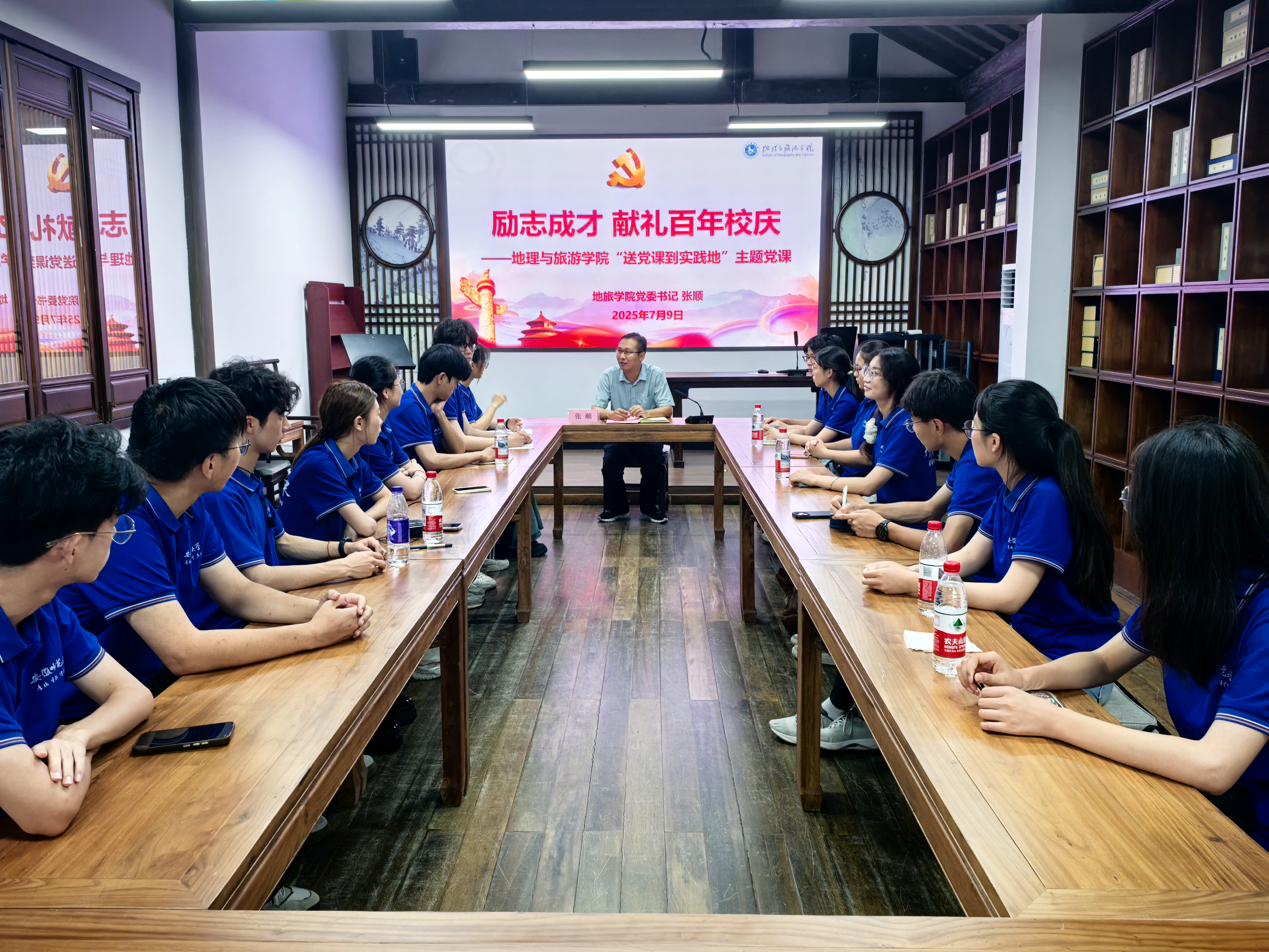 赴合肥包公故里文化园开展“送党课到实践地”主题党日活动,学院党委书记张顺以“励志成才 献礼百年校庆”为主题,为赴合肥“正气庐州路,青春信仰行”社会实践团队全体师生专题宣讲学校第十二次党代会精神。