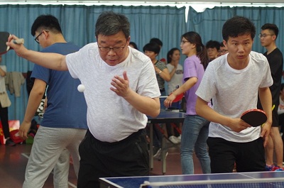 “我和我的导师”乒乓球团体比赛本着“友谊第一、比赛第二”的原则,旨在借助国球的非凡魅力,通过彼此切磋球技,增加研究生与导师之间的沟通交流,丰富研究生的校园生活,营造出健康向上的校园文化氛围。