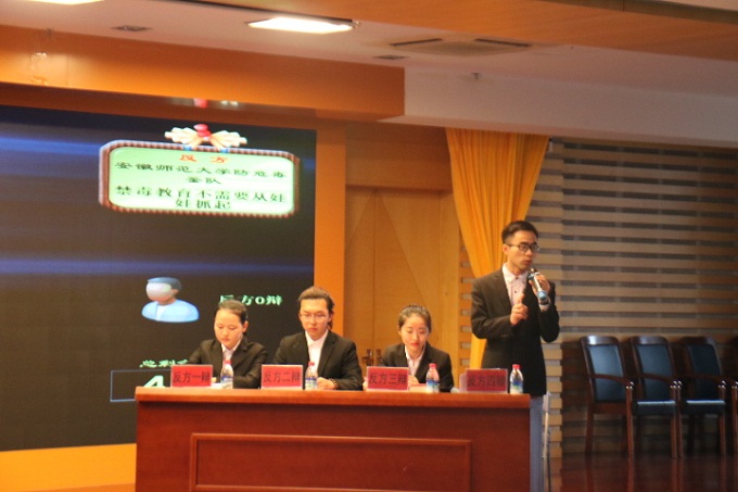 团委副书记吴辉的共同指导下,团队围绕辩题“禁毒教育是否需要从娃娃抓起?”做周密准备,与安徽中医药高等专科学校的对阵中充分展示风采,唇枪舌战、你来我往、妙语连珠,博得现场观众的阵阵掌声。