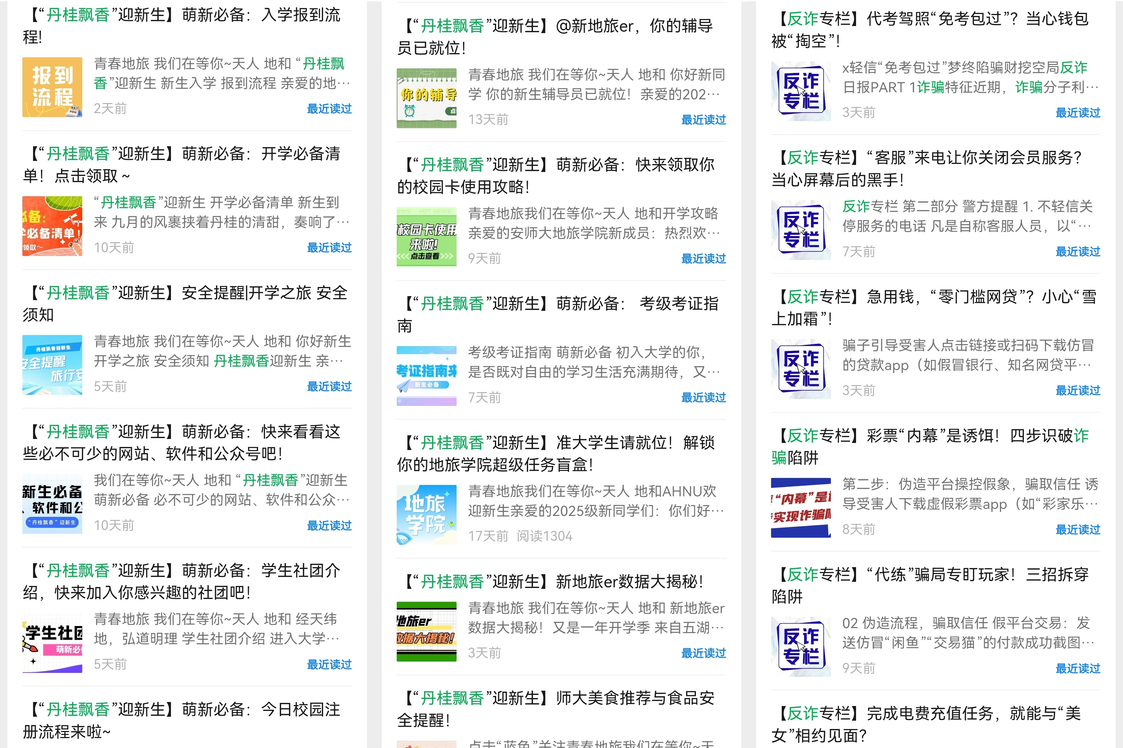 周密部署,夯实工作基础。学院于新生入学前全面启动筹备工作,构建起线上线下一体化迎新服务体系。线上通过官方微信公众号持续发布“丹桂飘香迎新生”系列推送,内容涵盖校园导览、专业初步认知、学长学姐建言、电信反诈等,帮助新生提前熟悉大学生活,建立对学院的归属感。线下多次召开志愿者动员与培训会议,由院团委与新生辅导员牵头,围绕礼仪举止、沟通方法、突发事件应对等开展系统训练,进一步压实岗位责任、提升服务水准,组建起一支精神饱满、业务熟练的迎新团队。