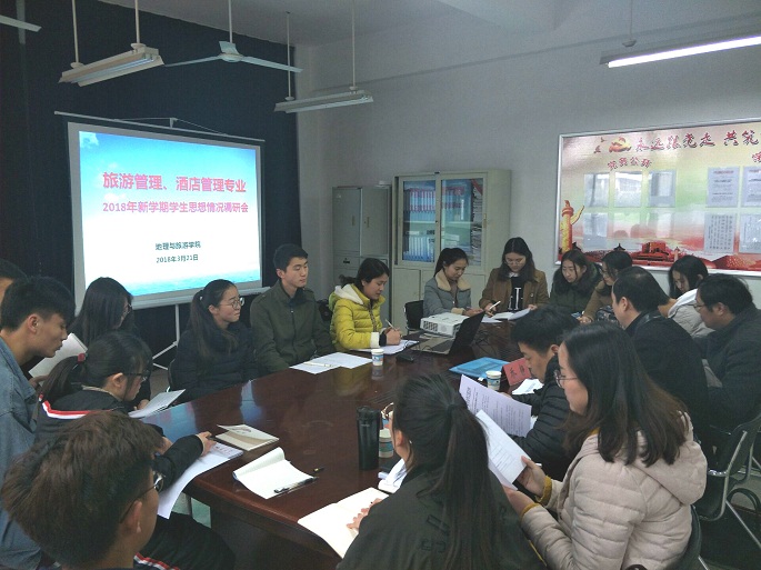 召开2018年新学期学生思想调研师生座谈会,根据专业划分成地理土管、旅游酒店、地信城规三个分会场。院长苏勤、院党委副书记乔静、分管教学副院长方凤满、分管行政副院长赵冬梅以及各专业负责人、全体辅导员、各年级学生代表参加了本次座谈会。