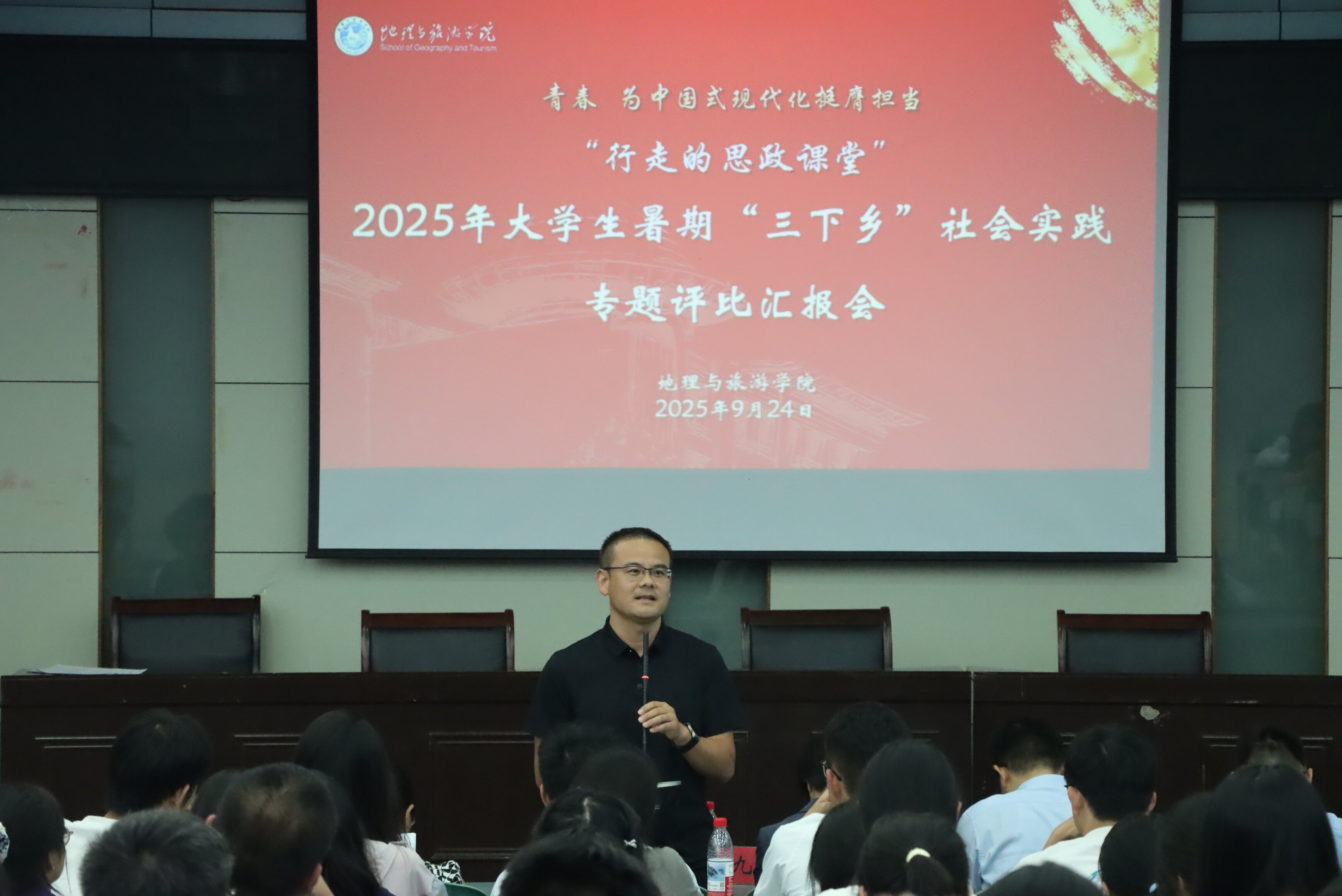 在实验楼101报告厅举行暑期社会实践专题评比汇报会。学院党委副书记付勇、地理科学(师范)专业教师苗雨青、旅游管理专业教师王咏、土地资源管理专业教师董婷、地理信息科学专业教师季青、城乡规划专业教师朱玮林、学院团委以及各专兼职辅导员代表担任本次会议评委,实践团队队员、各年级学生代表观摩学习。