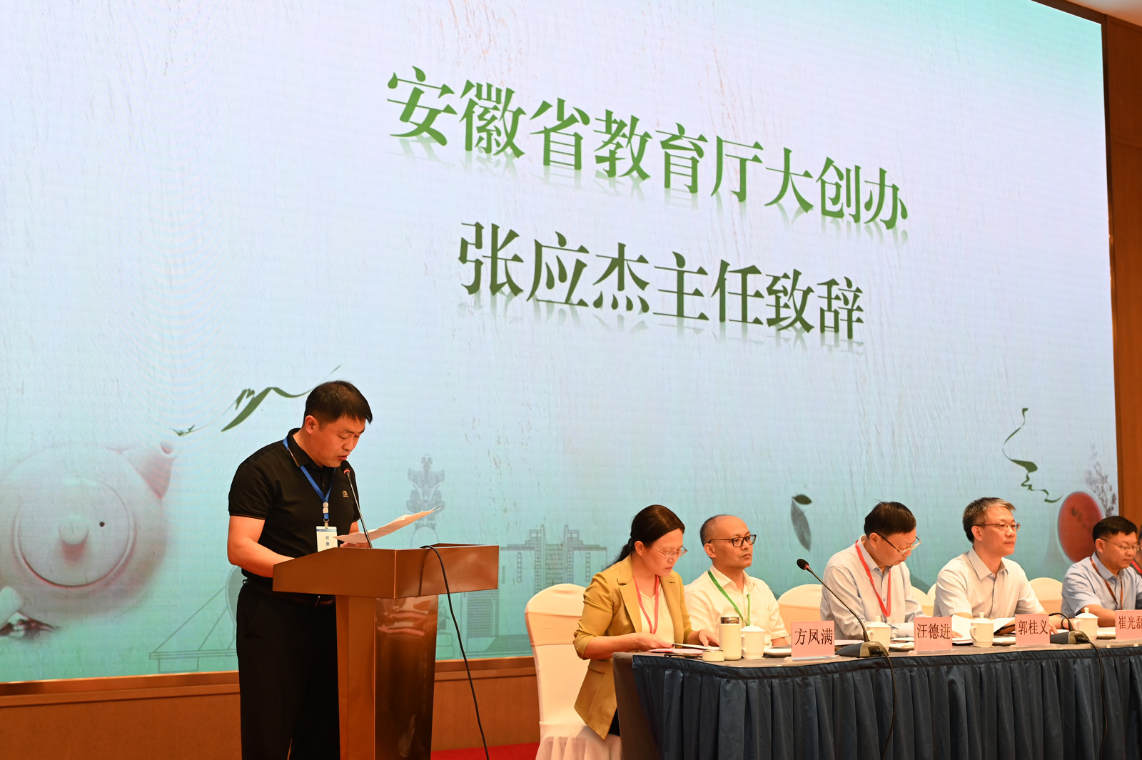 对全体参会人员表示热烈的感谢和欢迎。他介绍了学校的办学情况和赛事筹备情况,提出希望通过本次大赛,各个高校师生团队能够就“如何传承源远流长的中华茶文化,弘扬中华优秀传统文化;探索创新创业型人才培养新途径和新方法,推动安徽高校教学改革,推动高校创新创业教育工作;提升大学生综合素质,增强创新意识、创新精神和创新能力”等主题开展交流探讨,促进人才培养质量提升。