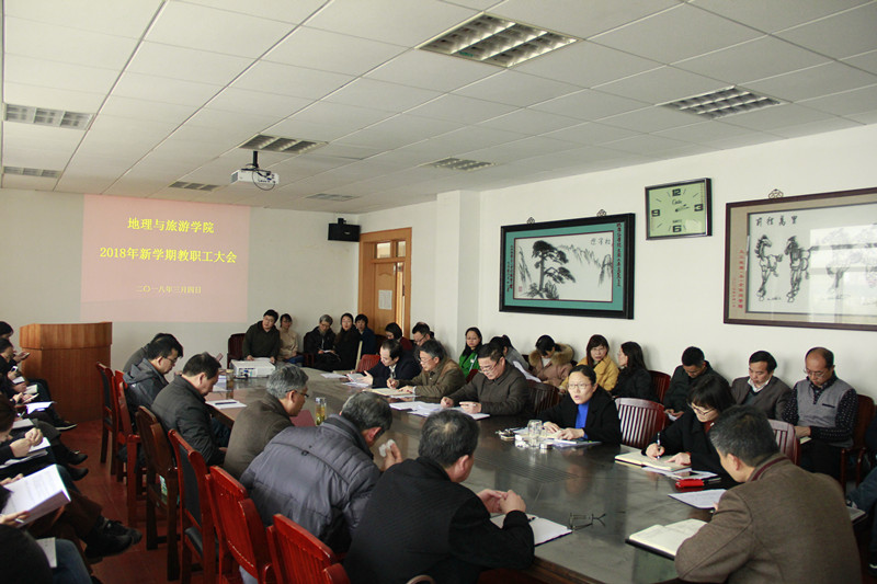 会上,各分管院领导分别对各自分管的新学期的重点工作计划进行了解读和开学初的工作进行了具体布置。方凤满布置了开学初“三教”落实、选课和专业实习等工作;王朝辉因外出学习由苏勤代替强调了基金申报以及部分点长调整工作;乔静汇报了近期考研上线的本科生面试辅导、“职旅天下”招聘会和本科生论文大赛等重点工作;赵冬梅通报了实验楼维修改造进展及庆祝三八节系列活动的通知;贾冠忠通报了学院2017年度党员领导干部民主生活会情况,承诺进一步落实问题清单并整改,部署了学院2018年党建重点工作;苏勤向全院教职工说明了学院更名的始末,学院为了适应学科发展和一流地理学科建设的需要,院党政联席会研究决定,将国土资源与旅游学院更名为国产精品