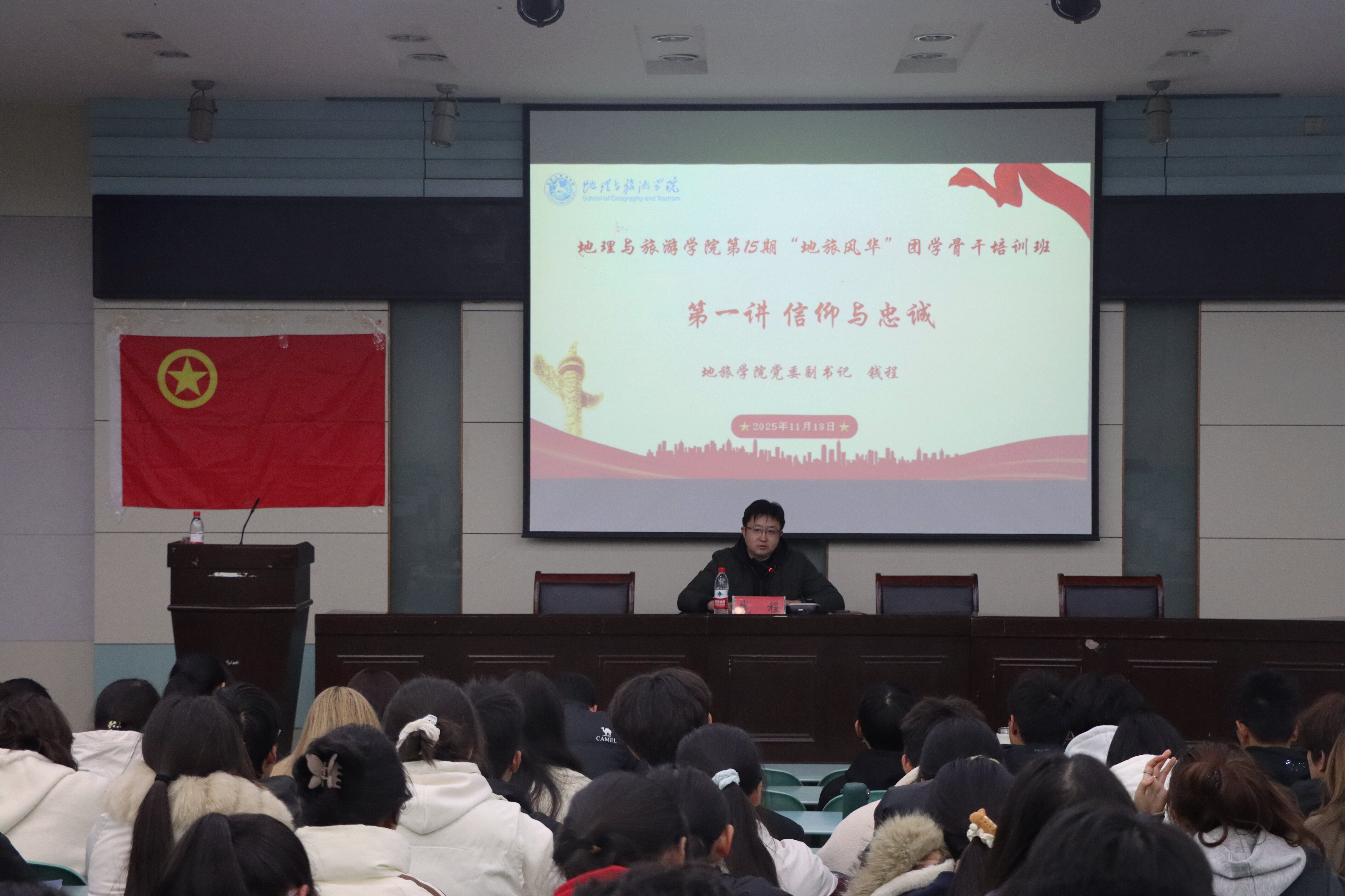 举办第15期“地旅风华”团学骨干培训班。院党委副书记钱程、院办公室主任陈健、院团委书记韦银艳、院团委副书记操晶晶参加教学活动,院团委、学生会骨干及各班级主要学生代表共同参与学习。