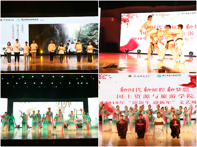 新的时代开启新的征程,新的征程承载新的梦想国旅学院2018“双迎”晚会师生同台共迎新年,莘莘学子用艺术的形式展现当代大学生拼搏、奋斗、努力的朝气,全体师生共同回顾了一年来学院发展中的精彩回忆和感动瞬间,鼓舞了全院师生的的信心激励大家在未来的岁月里,以“厚德、重教、博学、笃行”的师大校训和“经天纬地 弘道明理”的院训为指引,开拓创新,续写辉煌。为母校九十岁的生日献礼,共圆伟大的“中国梦”!