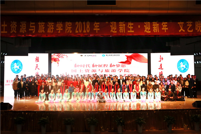 本网讯(国旅学院 王竞钊)迎新生,经天纬地不忘初心;贺新年,弘道明理继续前进。12月16日晚,国土资源与旅游学院2018“迎新生 迎新年”文艺晚会在花津校区大礼堂隆重举行校党委常委、副校长毕明福,庄严基金会秘书长杨晶晶校学生处处长、学工部部长台启权,校保卫处处长孙成岗,校审计处处长吴春雷,校团委书记梁燕,校人事处副处长姜长付,校基建处副处长罗振,校发展规划处副处长陈刚锋,校科研处副处长谭书龙等领导莅临晚会。国旅学院领导班子和全院师生参加了本场晚会。