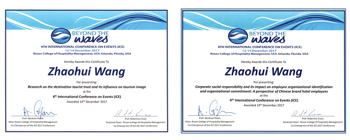 World Research Summit for Tourism and Hospitality)以及第四届国际事件会议(4th International Conference on Events),会议在美国佛罗里达州奥兰多市举行。