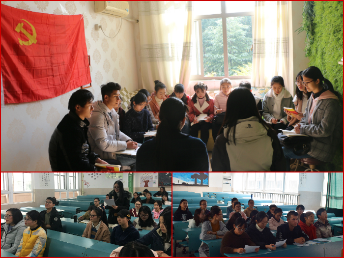 党的十九大召开以来,学院多次以朋辈教育形式,邀请高年级优秀学生党员,为预备党员入党积极分子开设一堂堂别开生面的党课一位来自2014级旅游管理专业的学生党员韦银艳就自身学习工作经历,浅谈对“不忘初心、牢记使命”的理解另一位来自2014级地理科学专业学生党员王一凡则和大家交流自己学习党的十九大精神的感悟,从自身出发,号召大家领会党的十九大的重大意义,明确党的十九大的主题,理解中国特色社会主义新时代内涵。